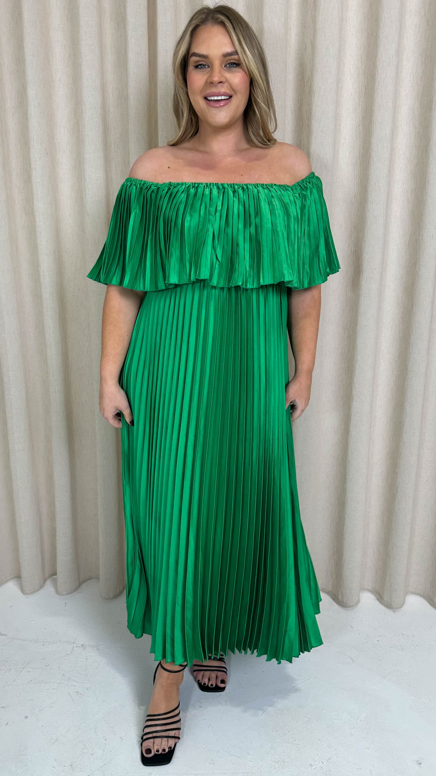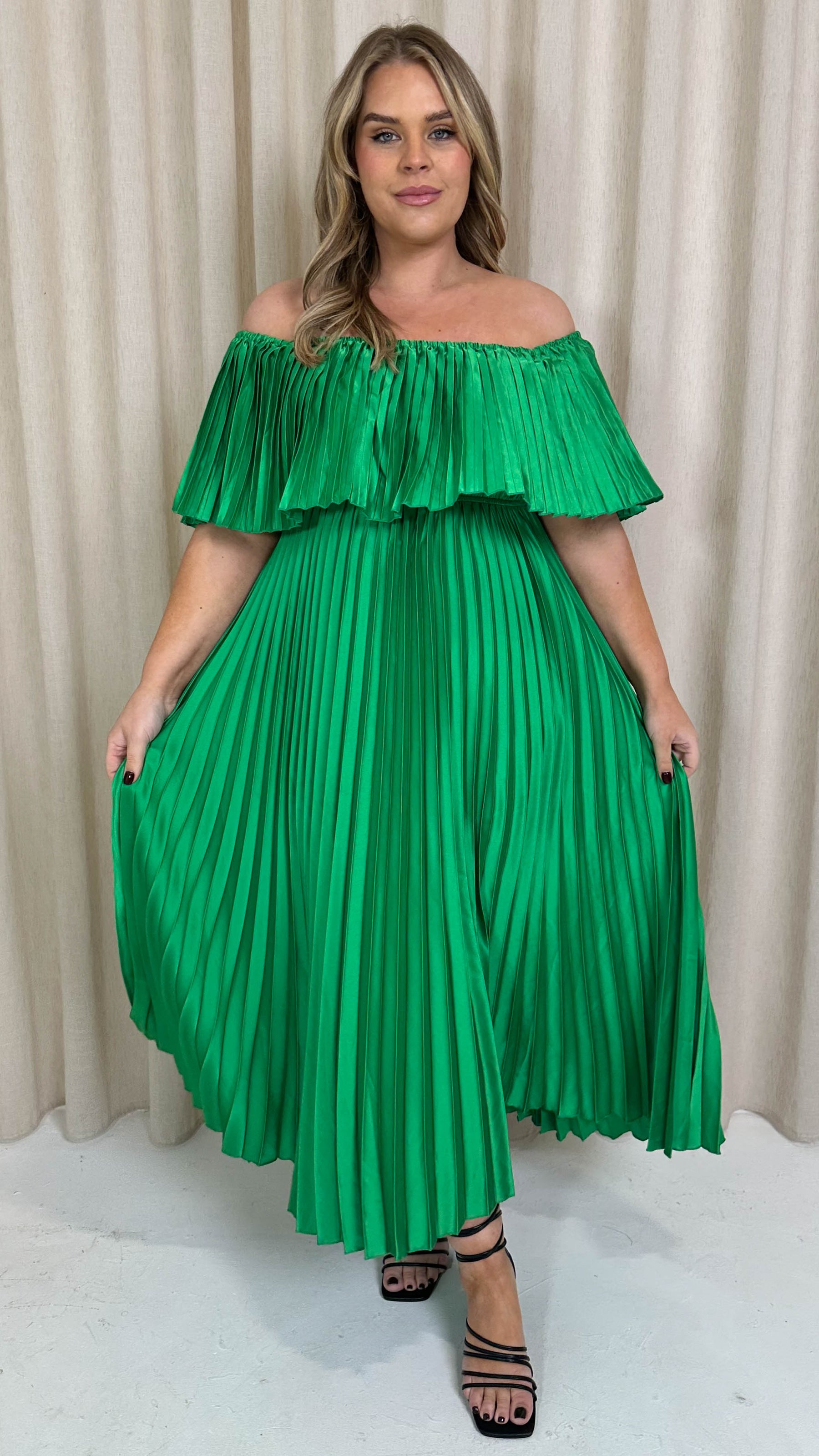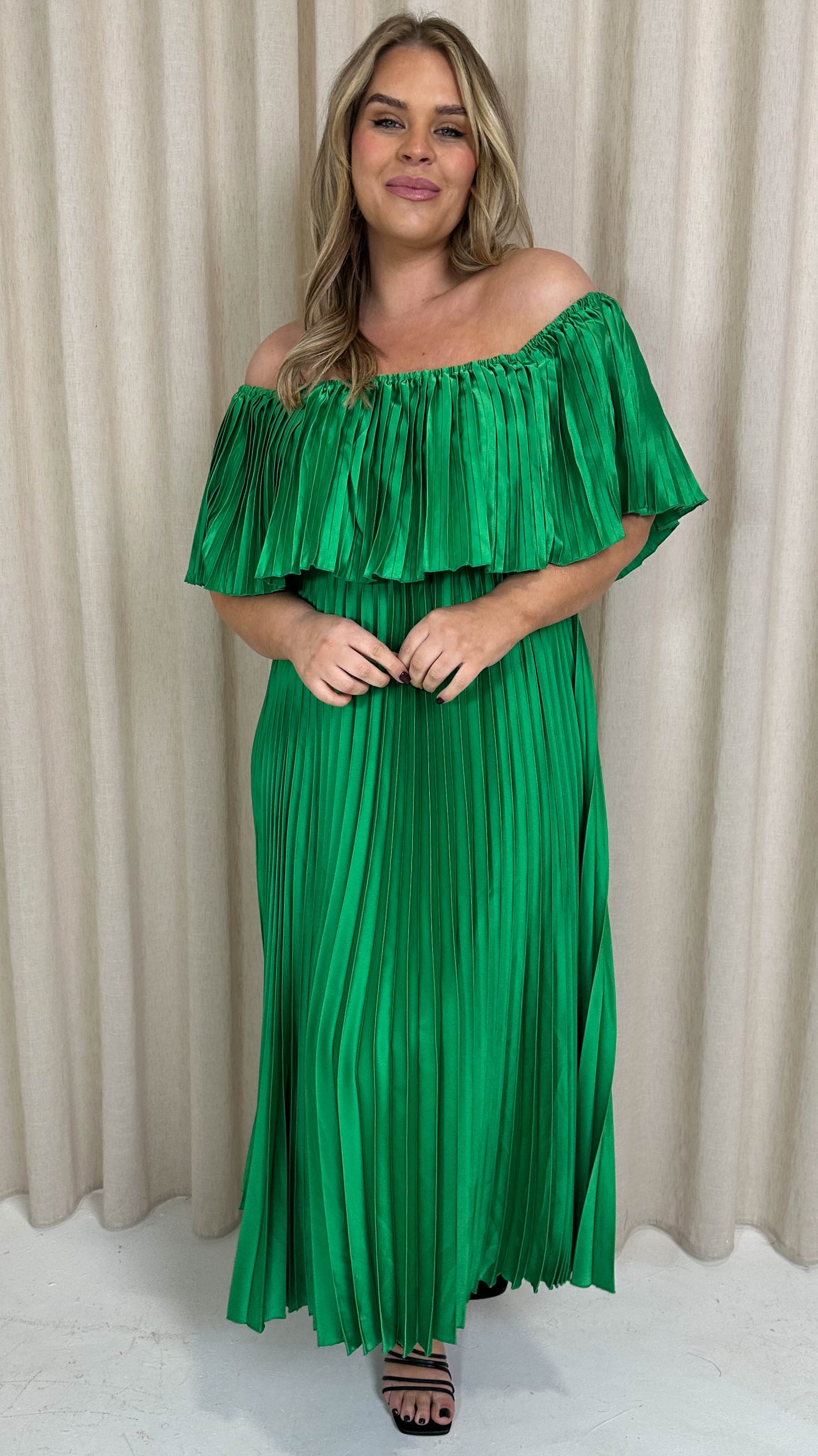 CurveWow Pleated Bardot Maxi Dress Emerald Green