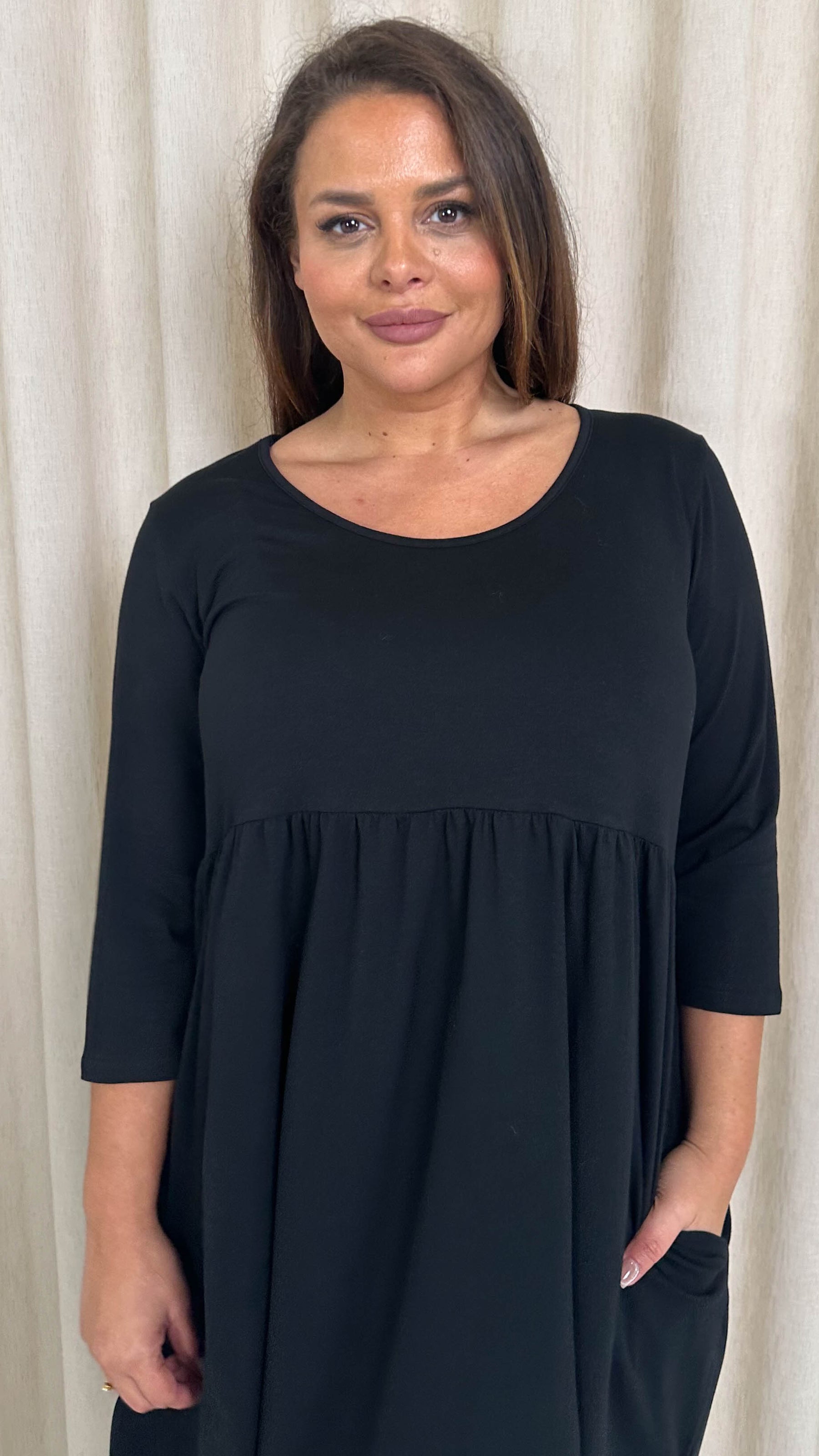 CurveWow Pocket Smock Dress Black