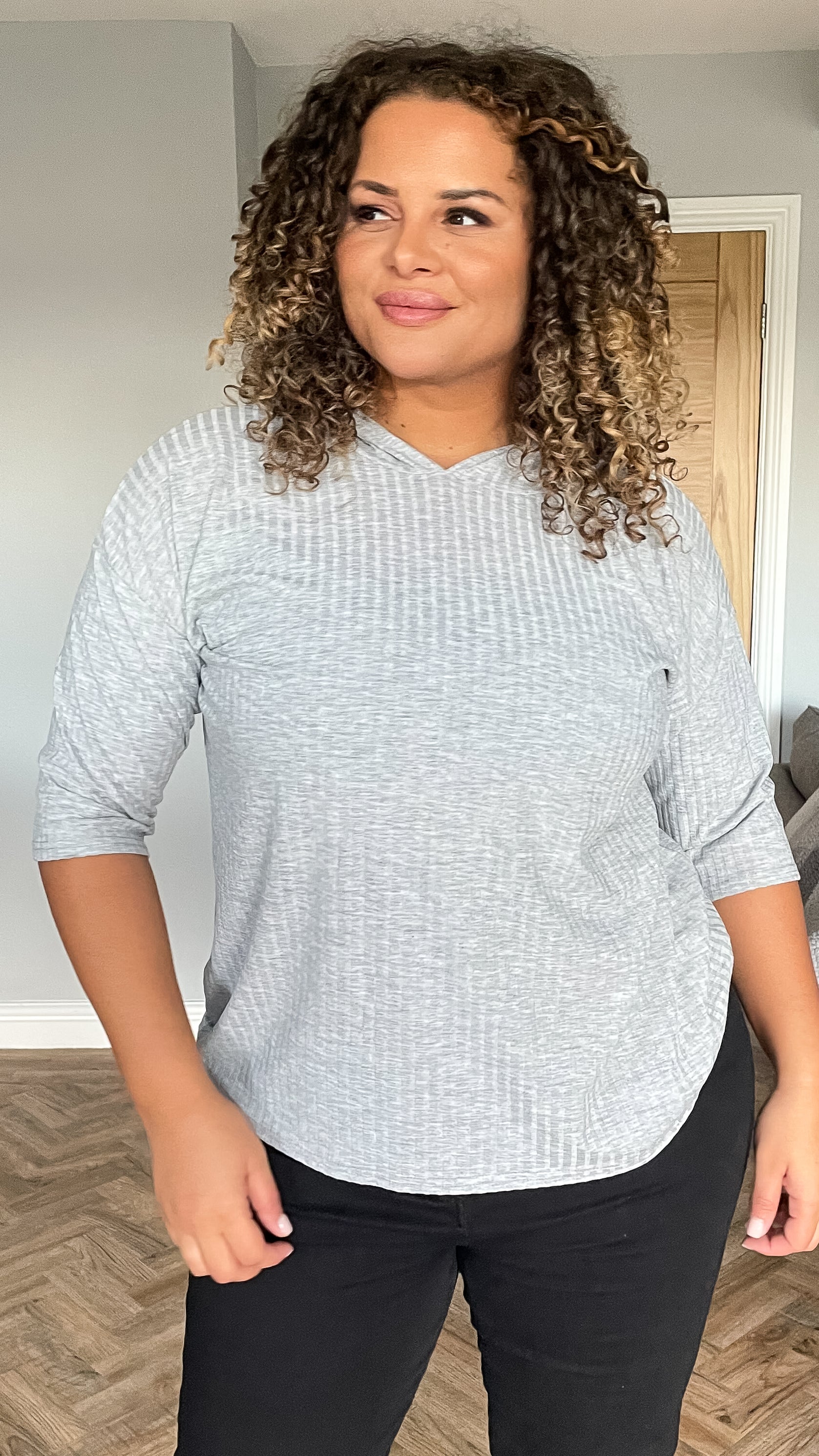 Time to Chill? Our ribbed hoodie is ready for those days at home or casual days out. Made from a comfortable stretch fabric, it features a v-neckline 3/4 length sleeves and a hood. Click loungewear to check out the full range.