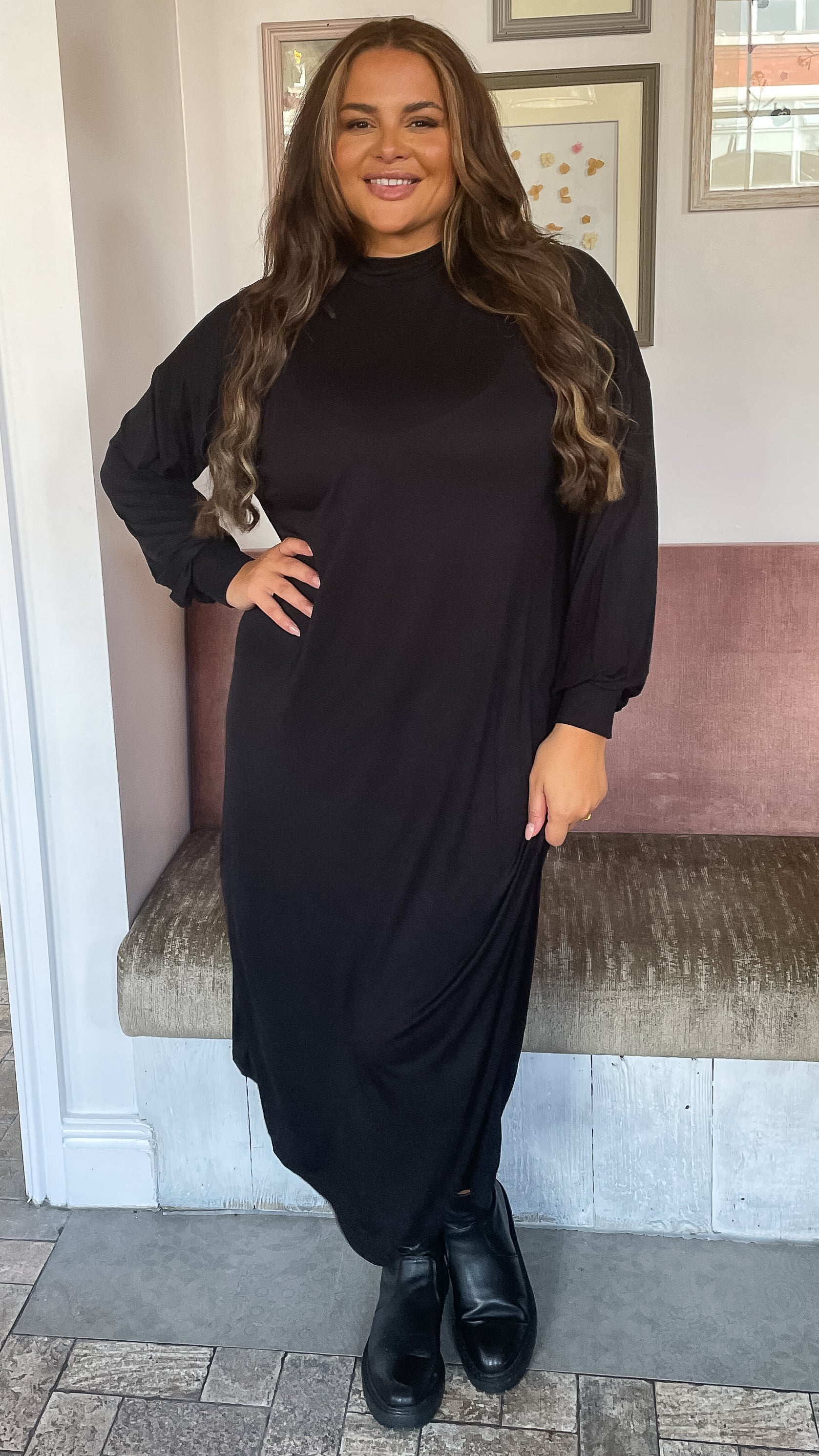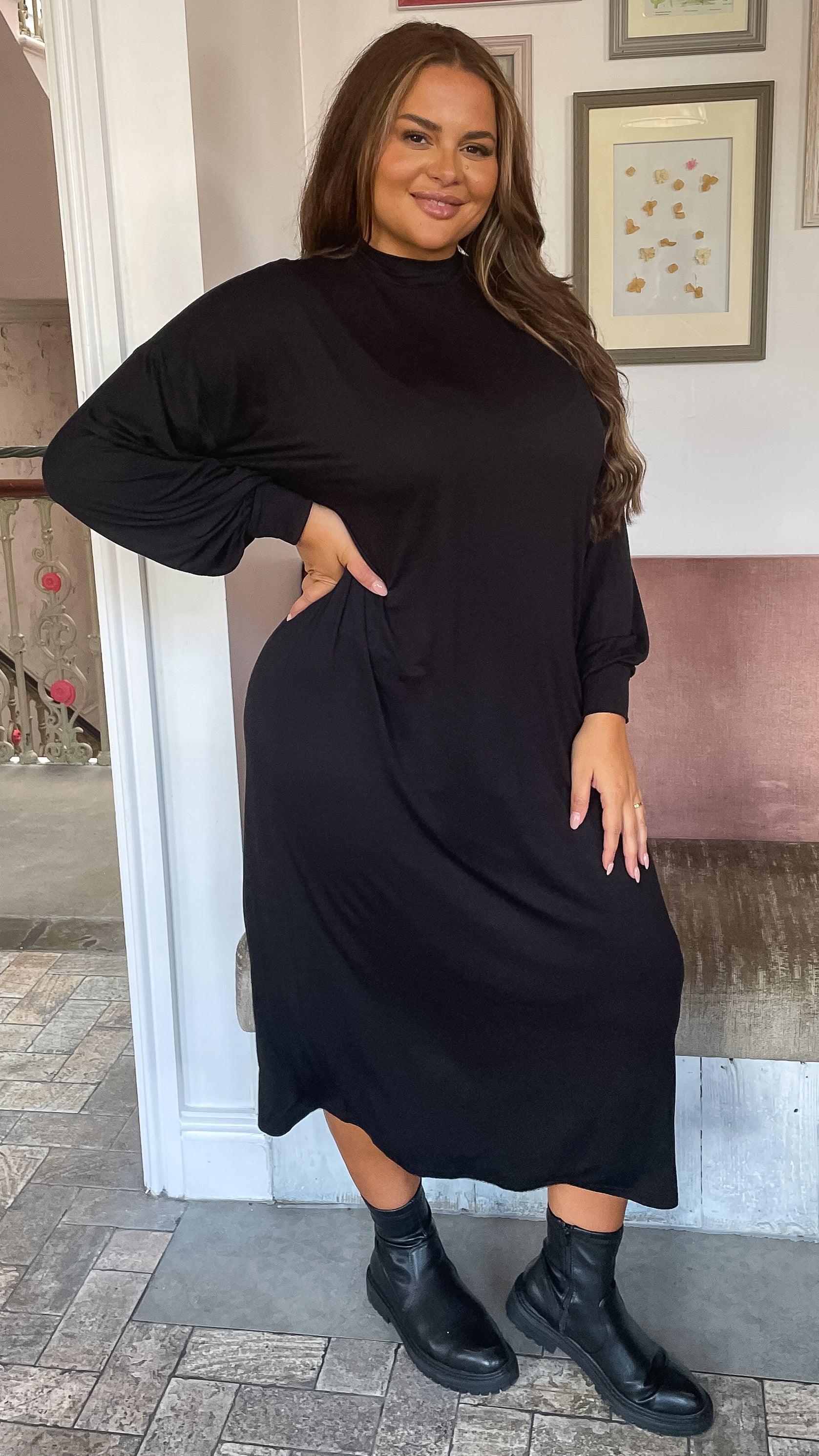 CurveWow Turtle Neck Balloon Sleeve Midi Dress Black