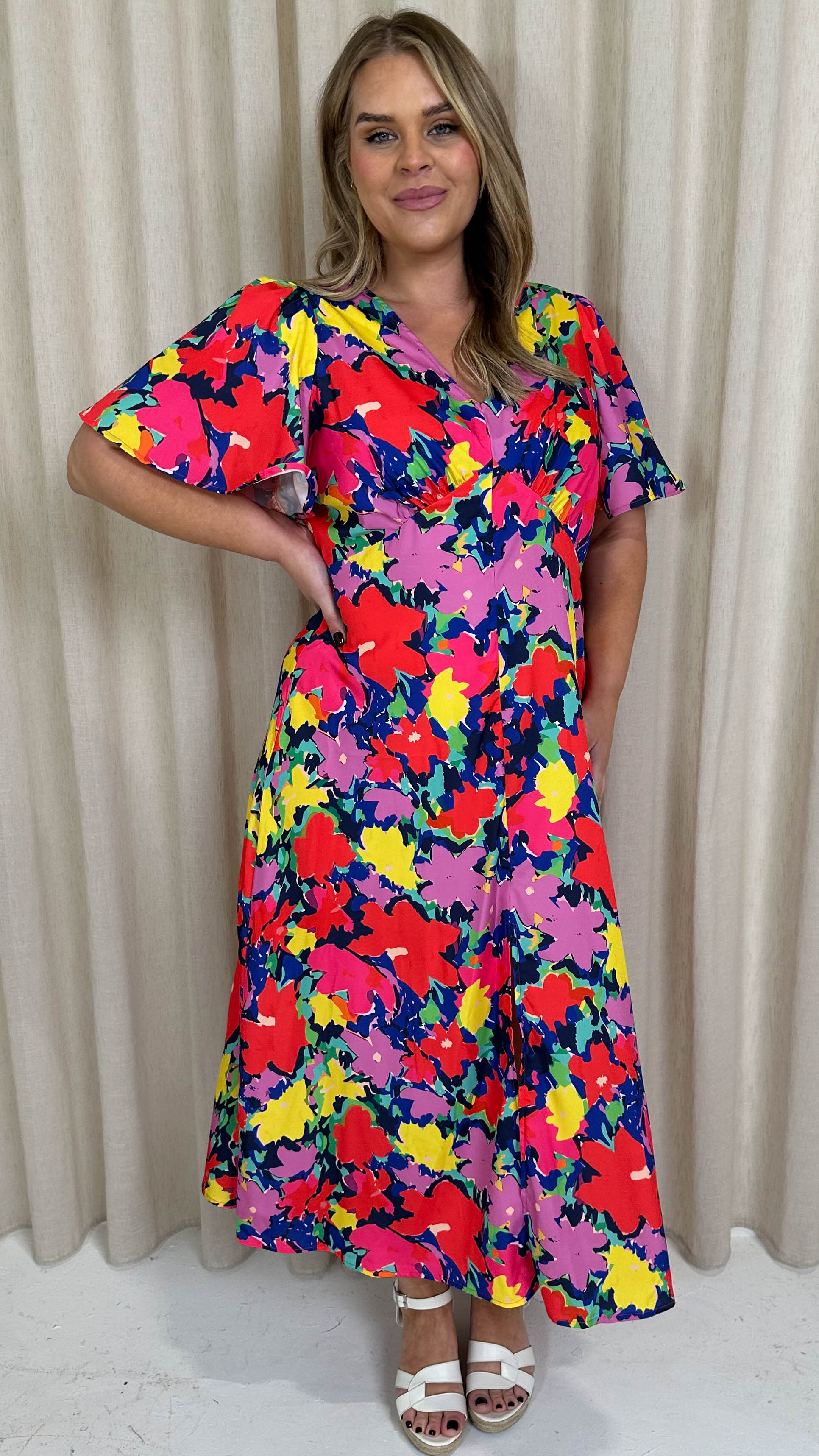 CurveWow V Neck Split Front Midaxi Dress Multi