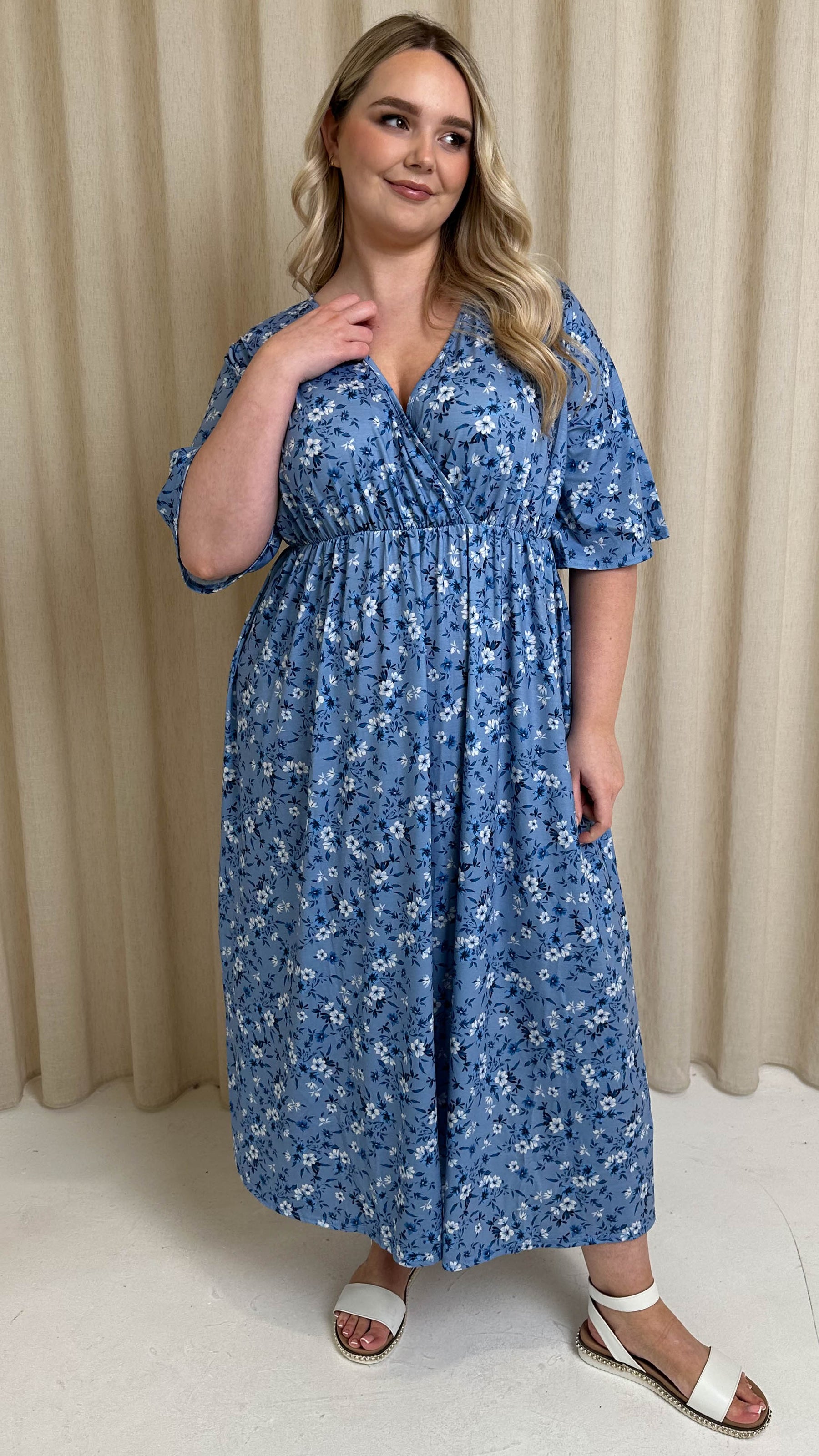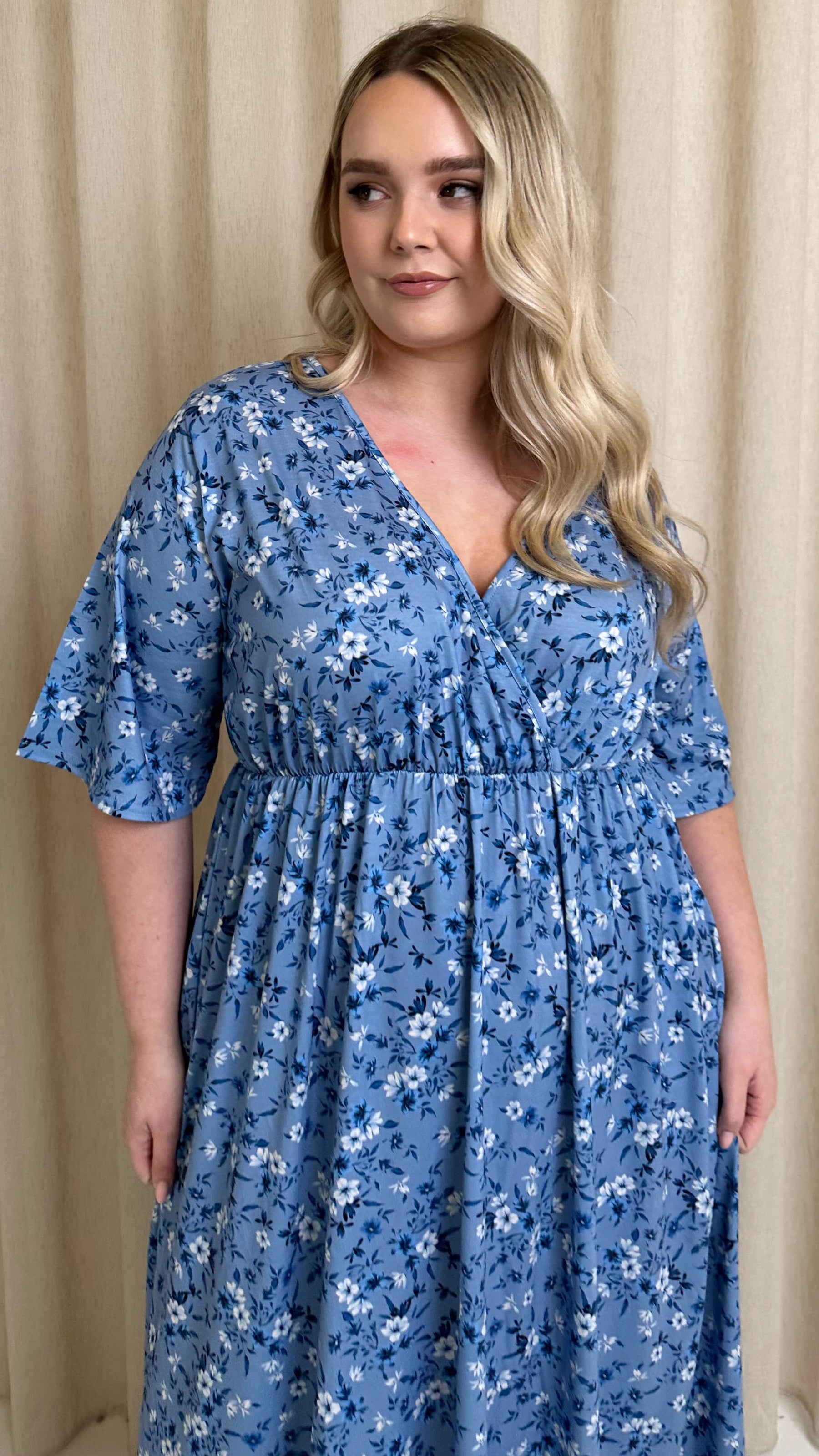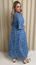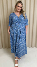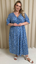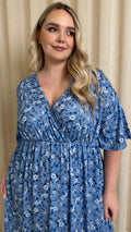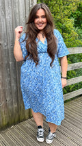CurveWow Wrap Midi Dress Blue Ditsy Floral