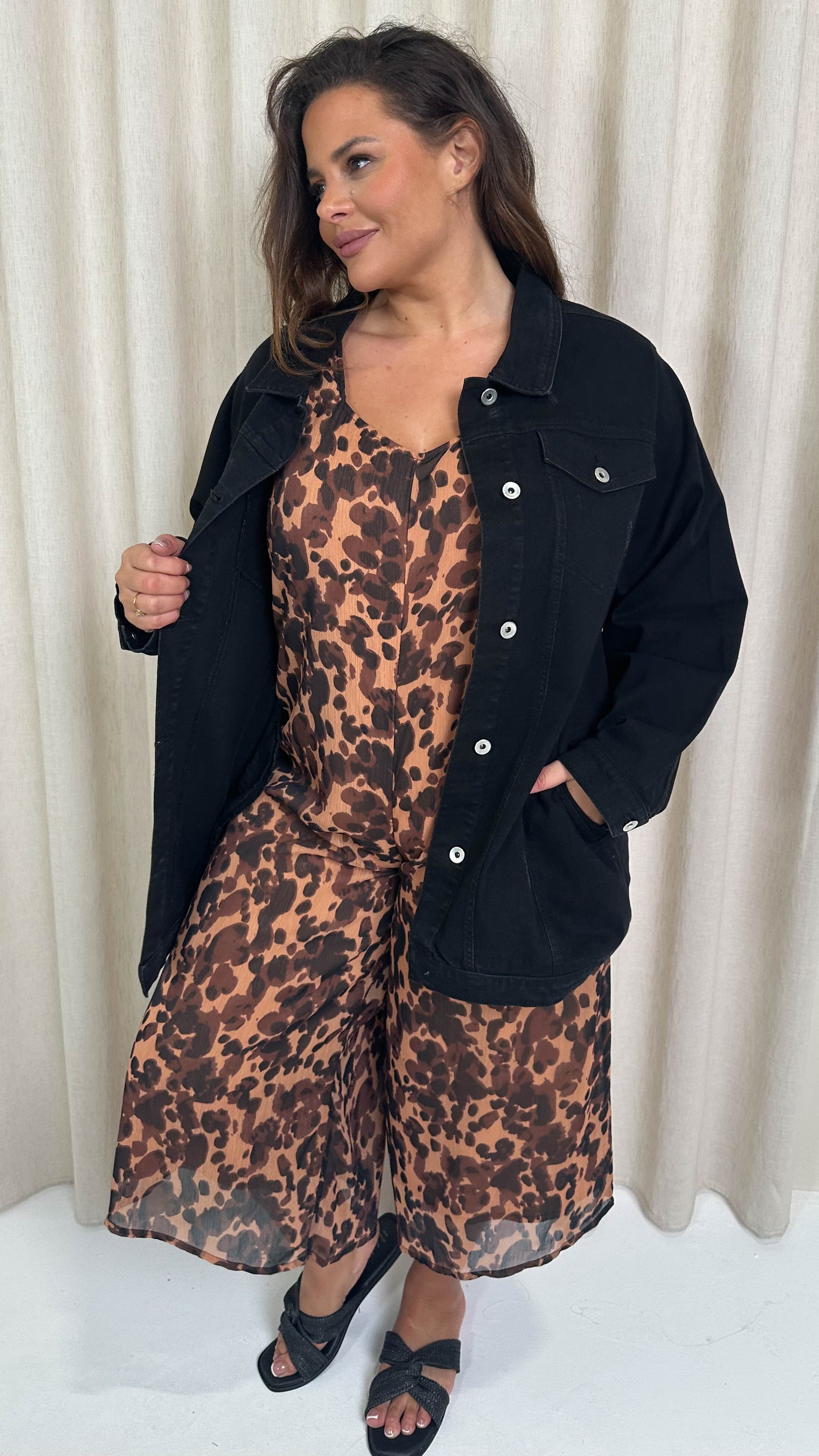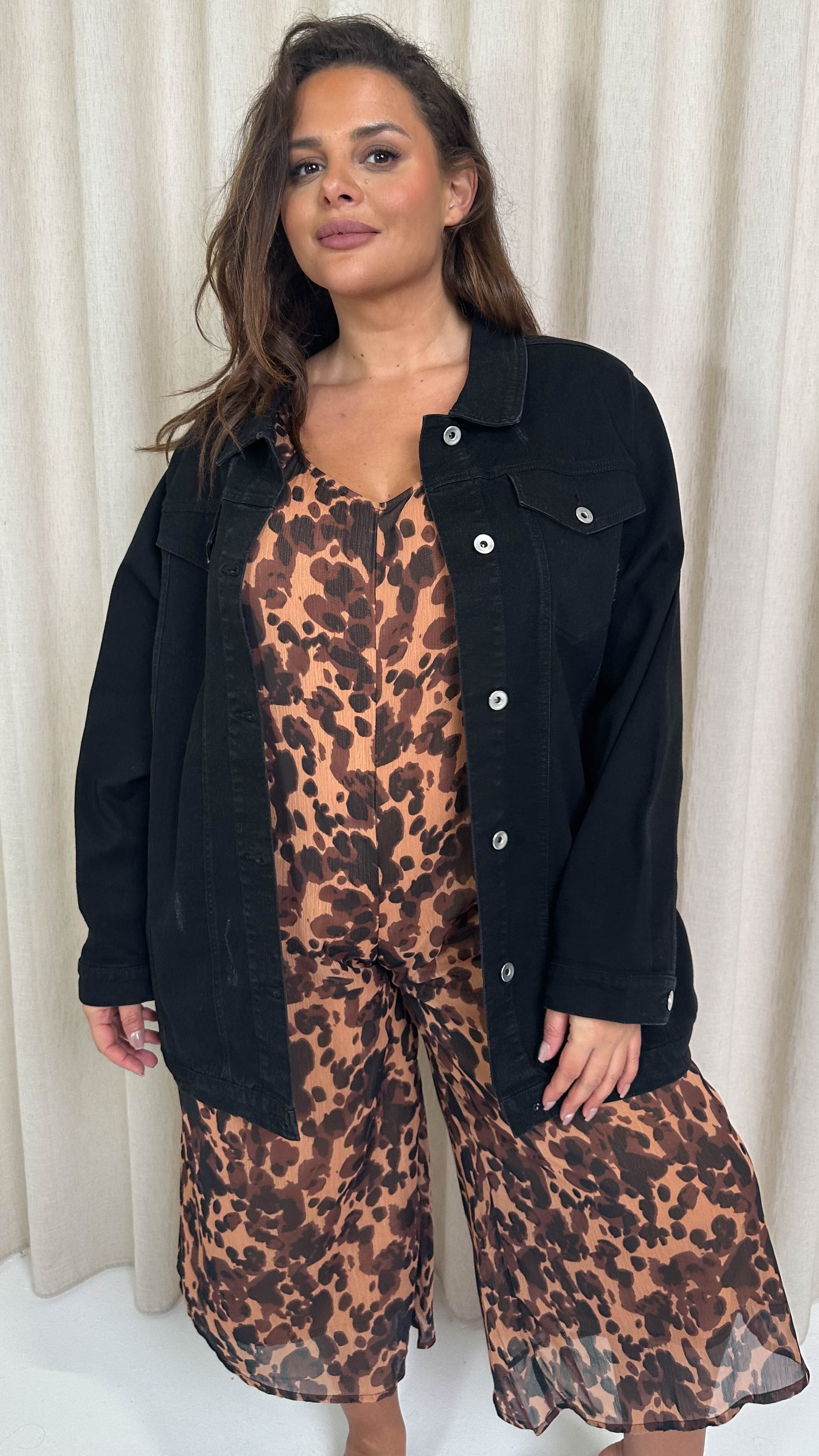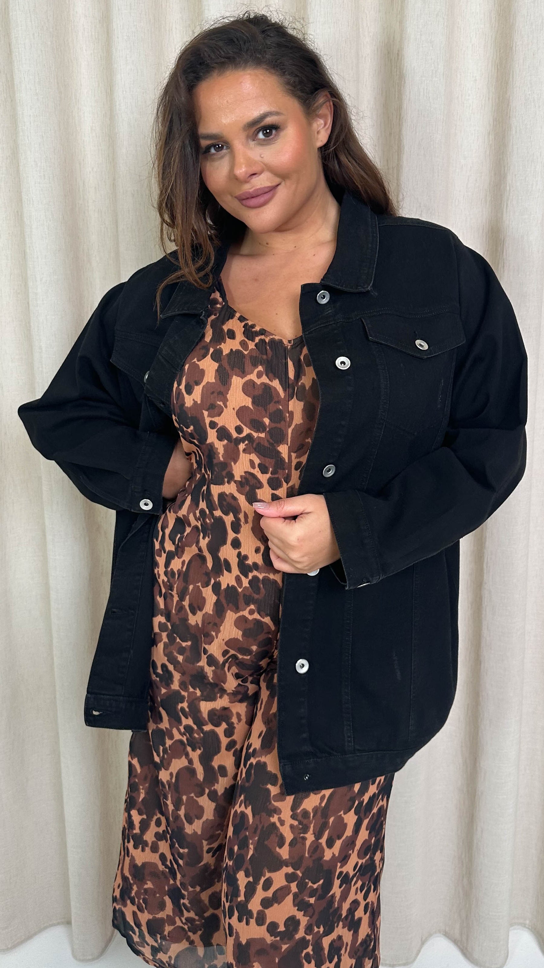 CurveWow Oversized Longline Denim Jacket Black