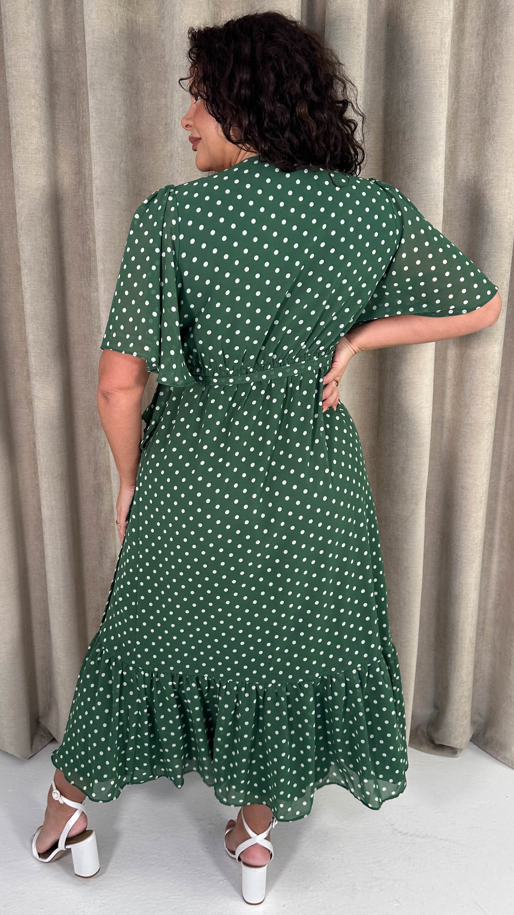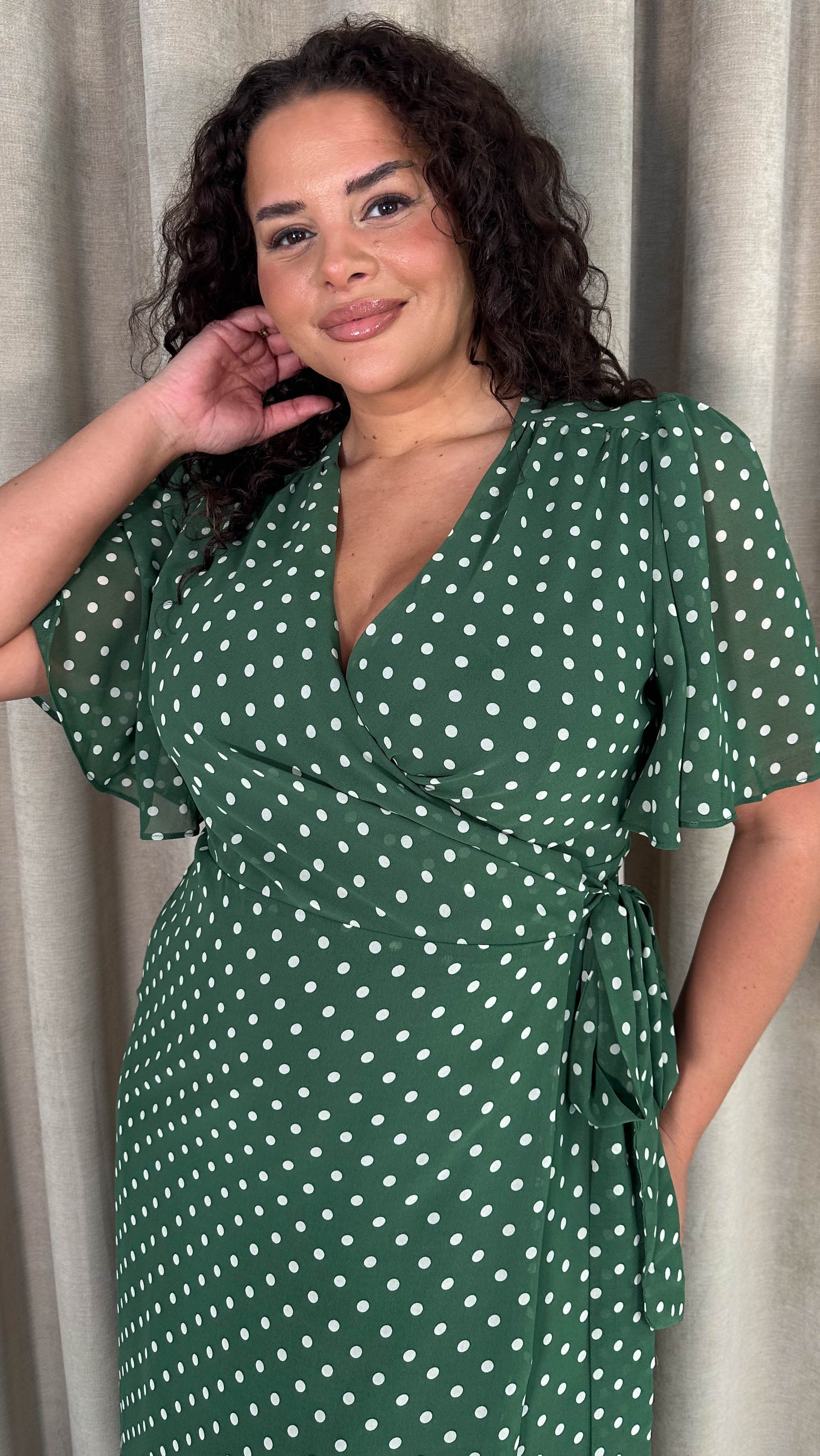 CurveWow Asymmetric Wrap Dress Green Spot