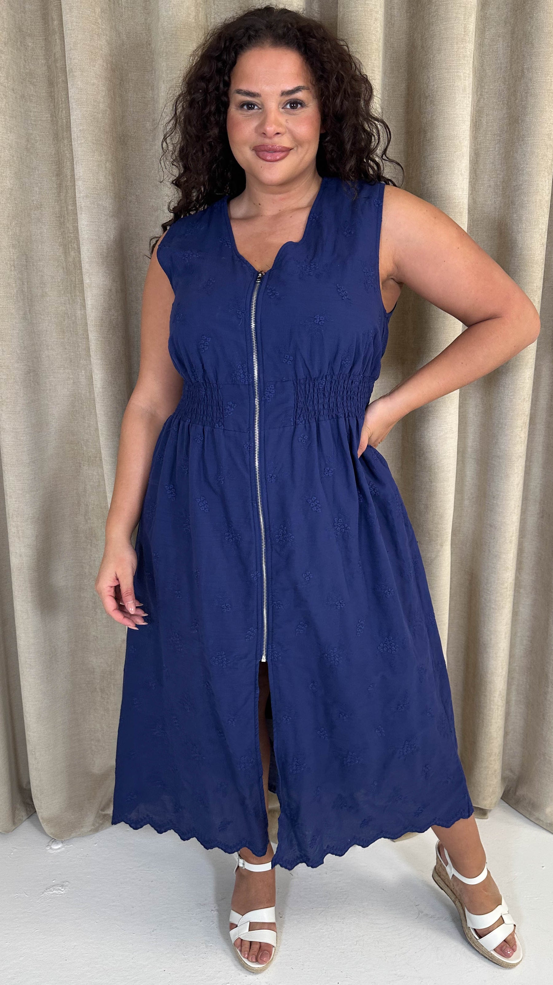 CurveWow Broderie Zip Front Dress Navy