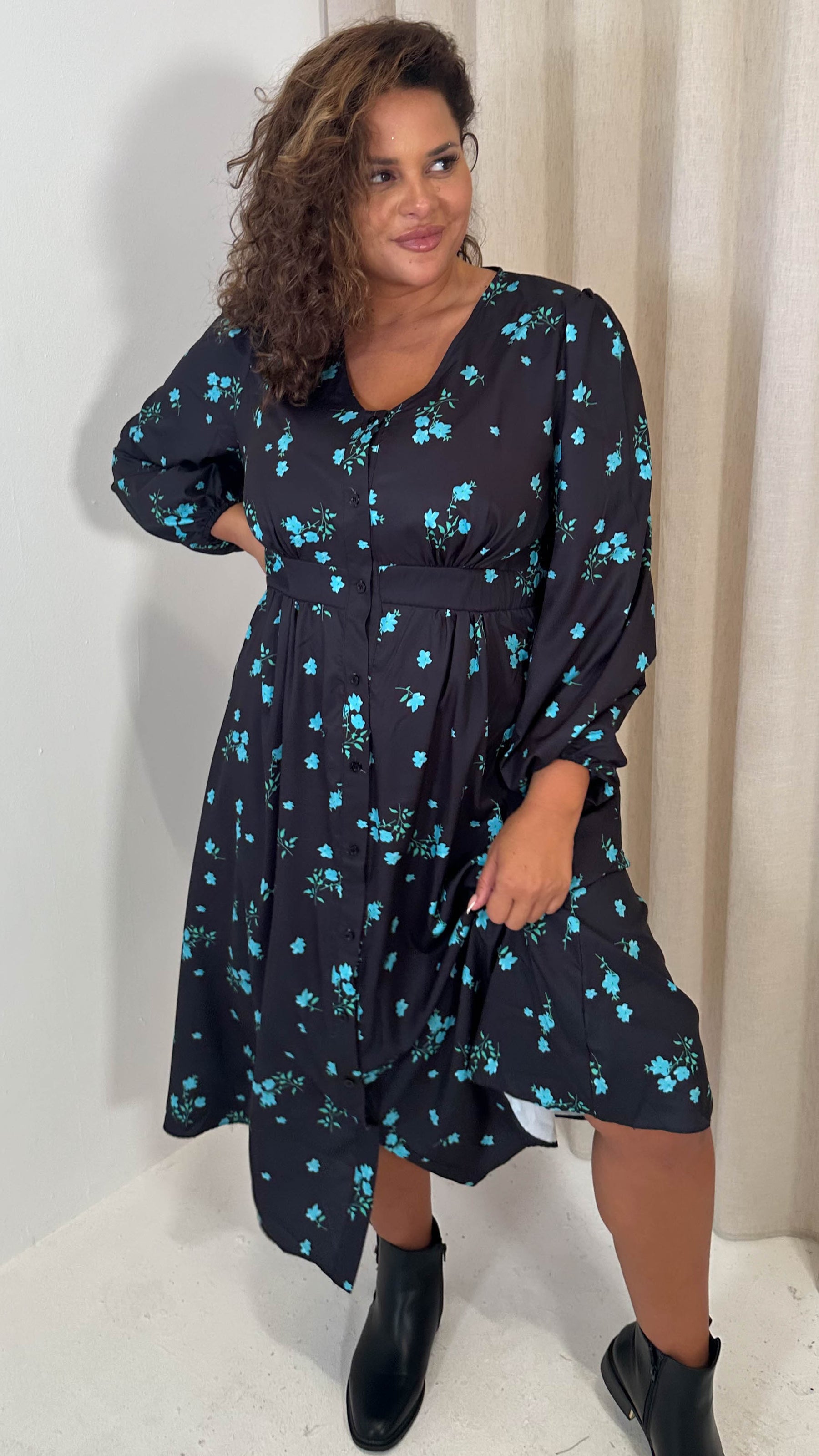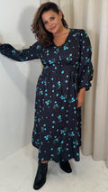 CurveWow Lace Front Frill Hem Midi Dress Snake