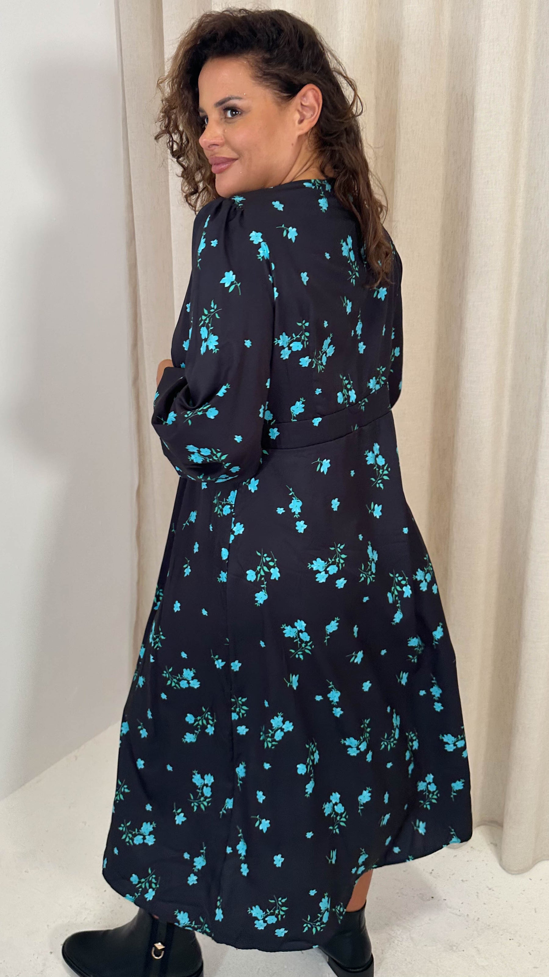CurveWow Balloon Sleeve Wrap Mini Dress Black & White Leopard