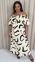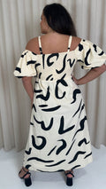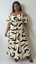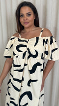 CurveWow Cotton Puff Sleeve Cold Shoulder Dress Mono