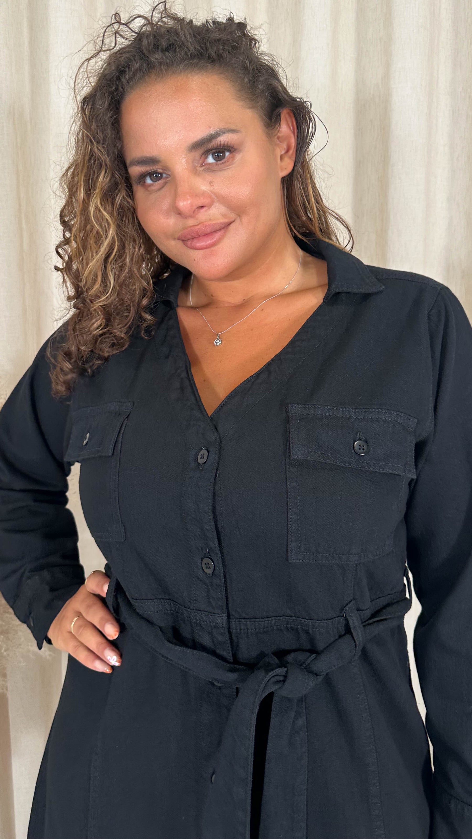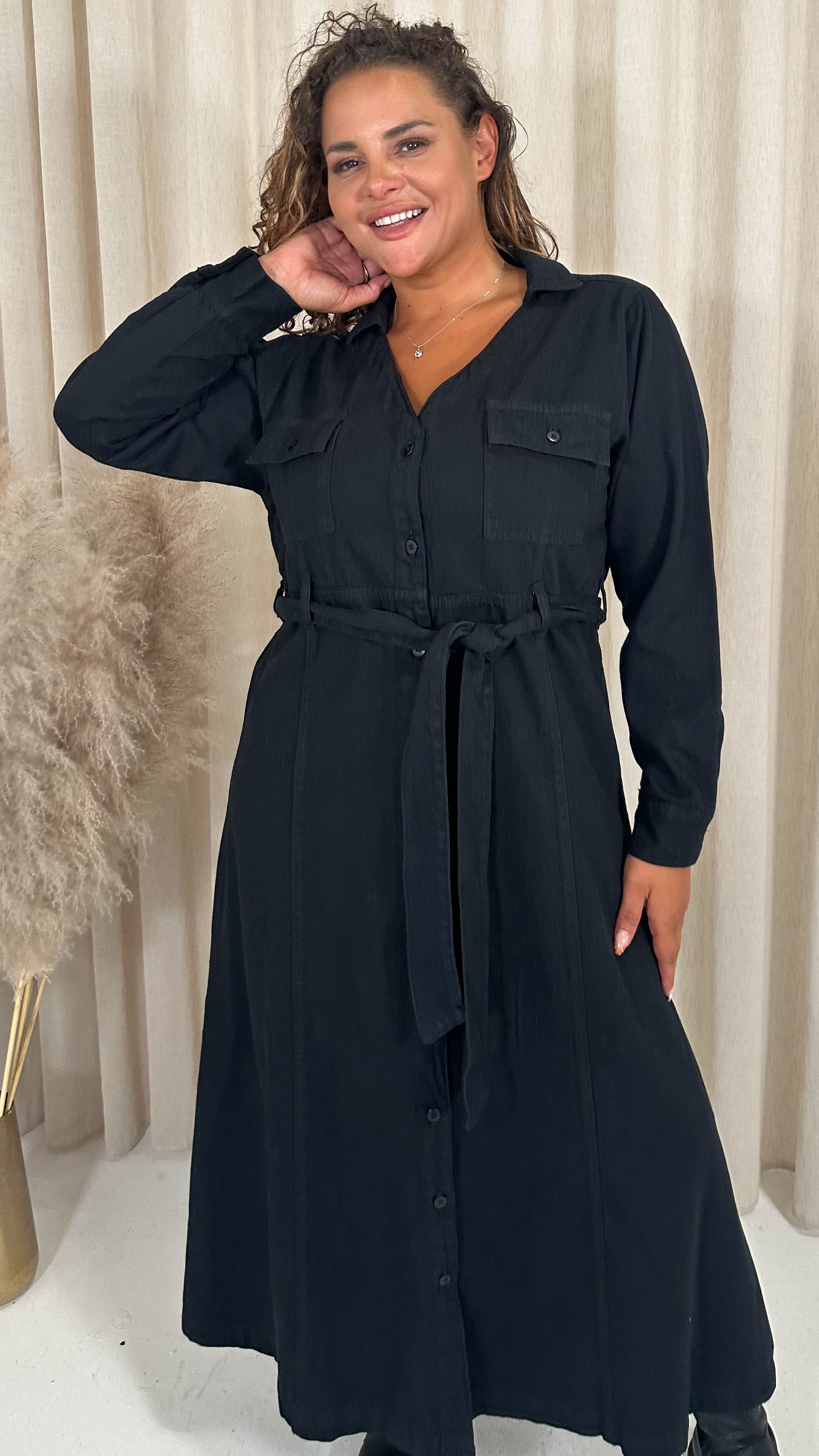 CurveWow Denim Belted Midaxi Shirt Dress Black Wash