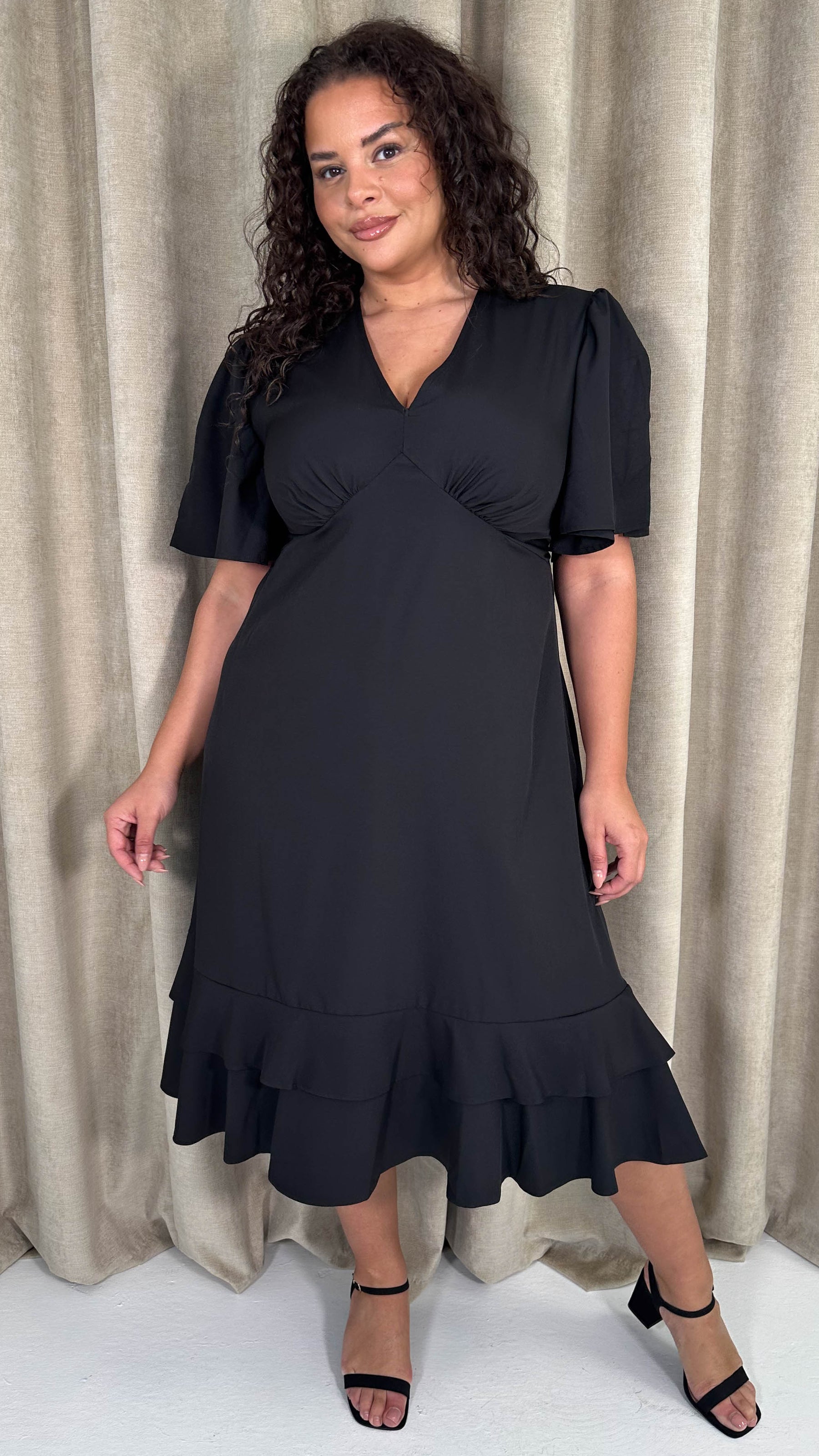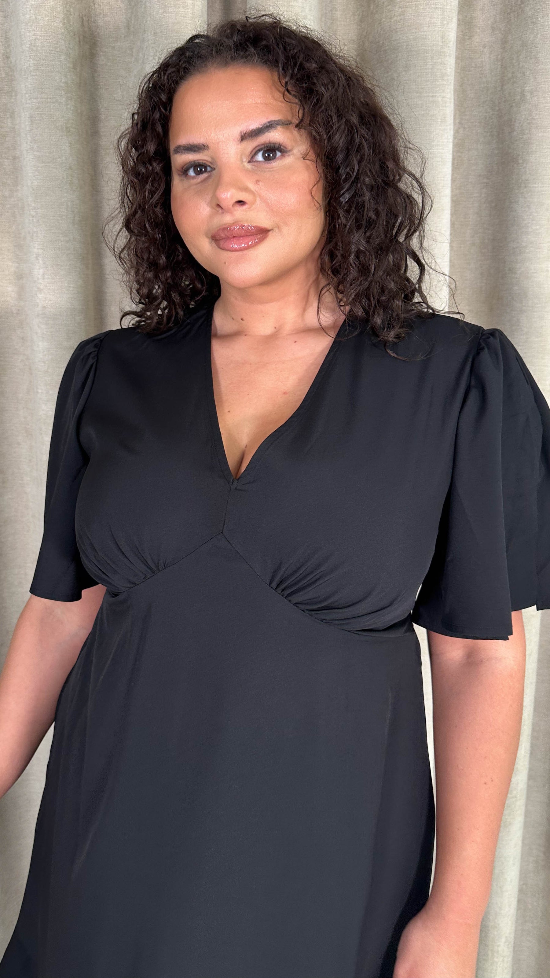 CurveWow Dobby Shirred Bodice Midi Dress Sage Green