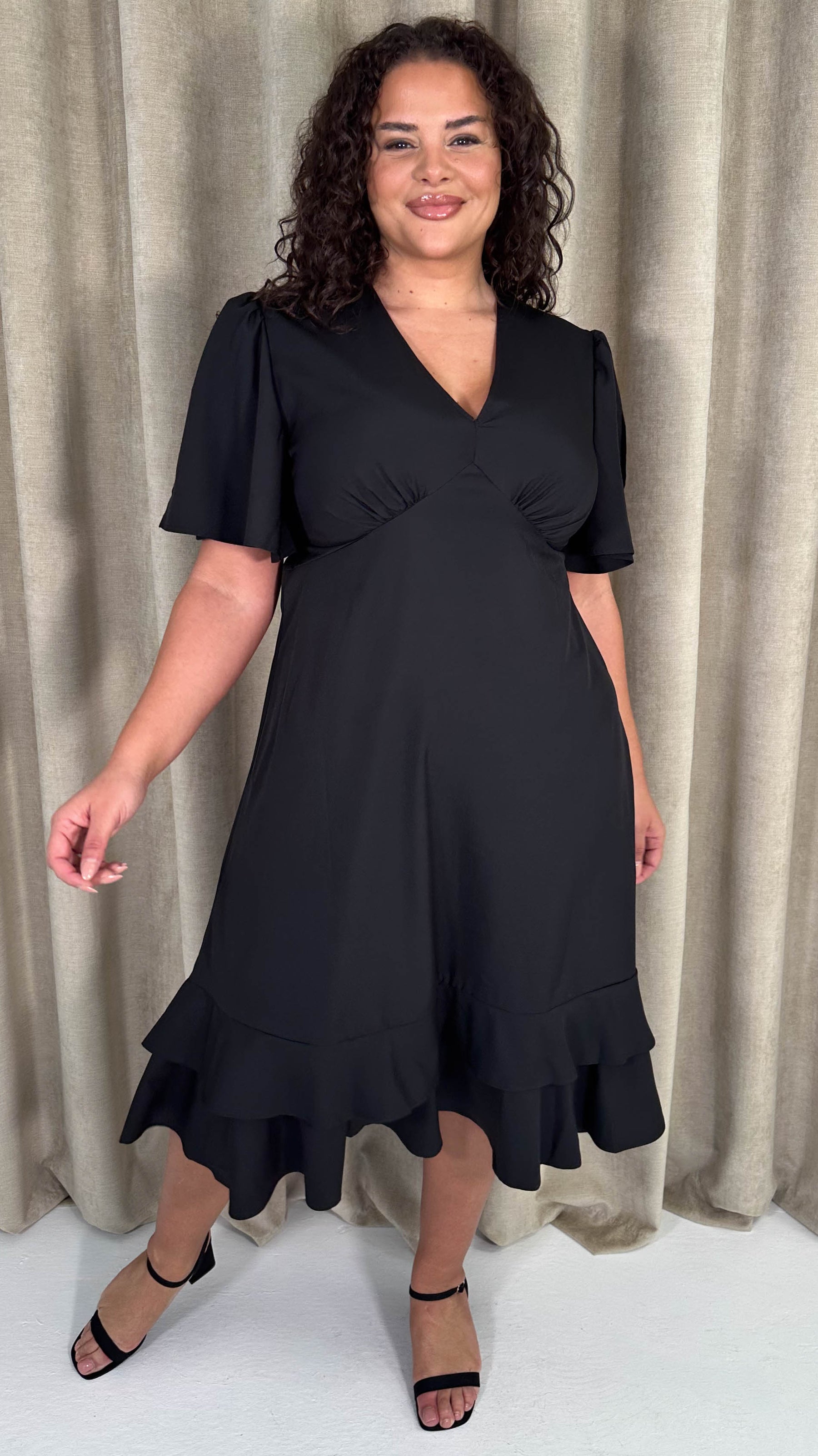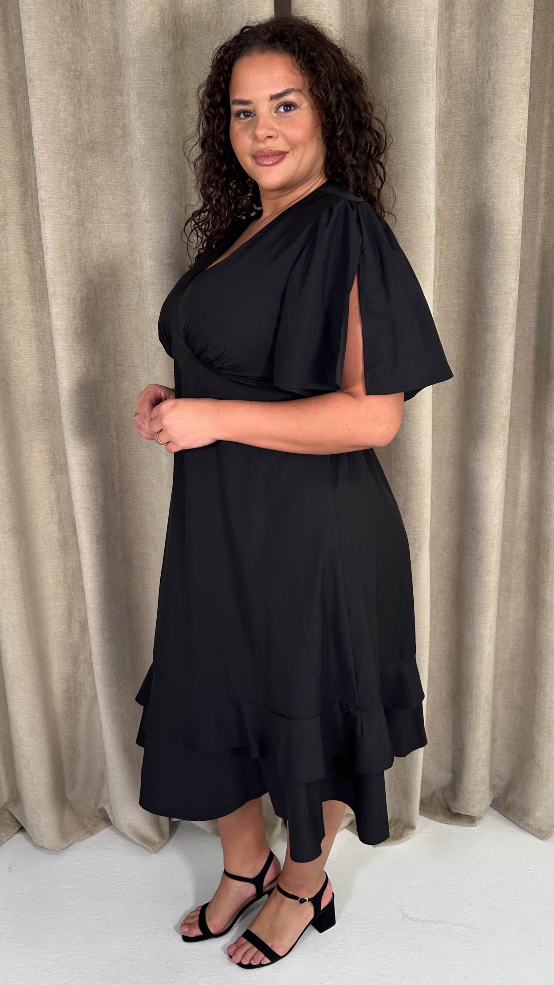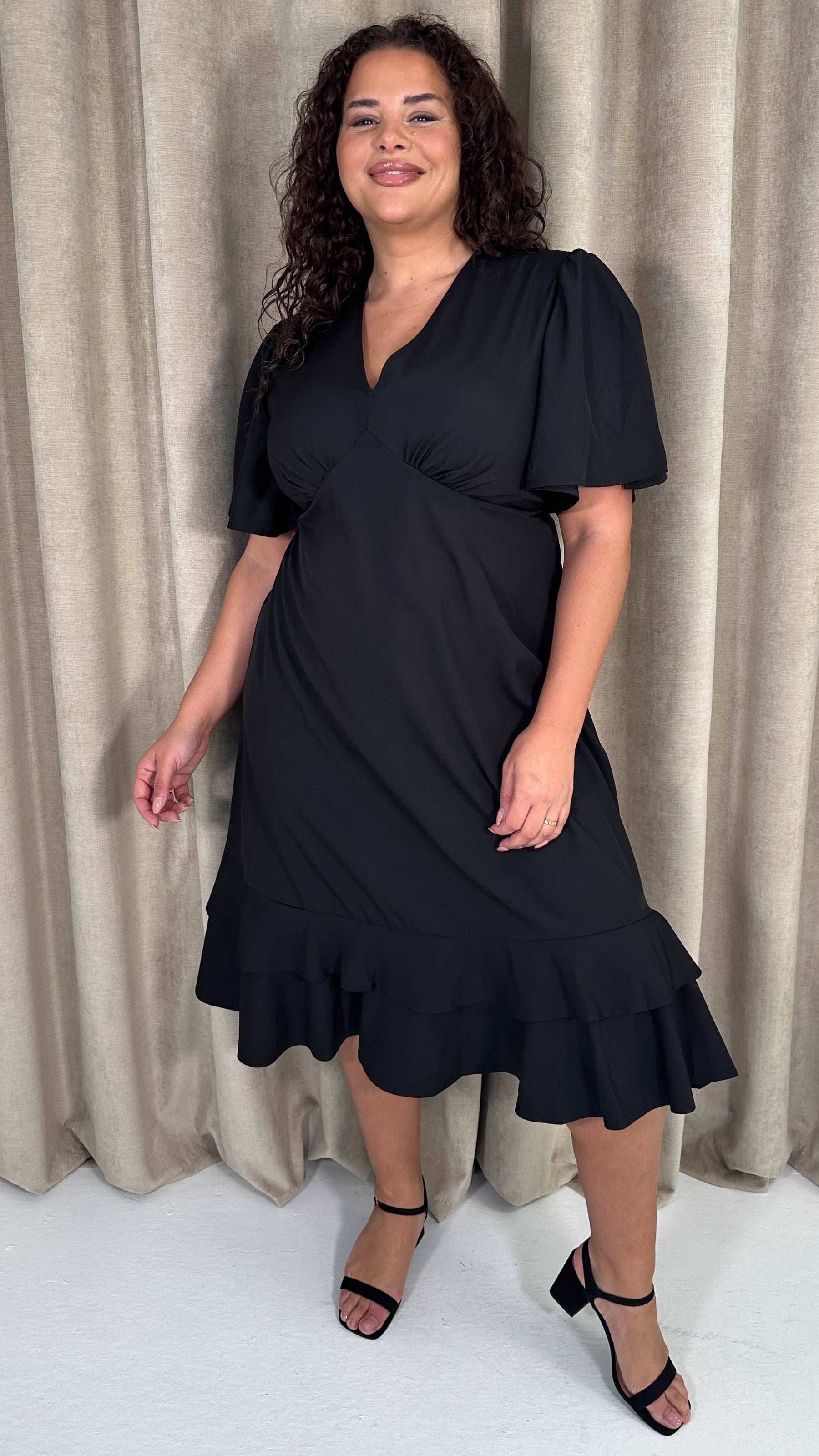 CurveWow Frill Sleeve Broderie Smock Dress Orange