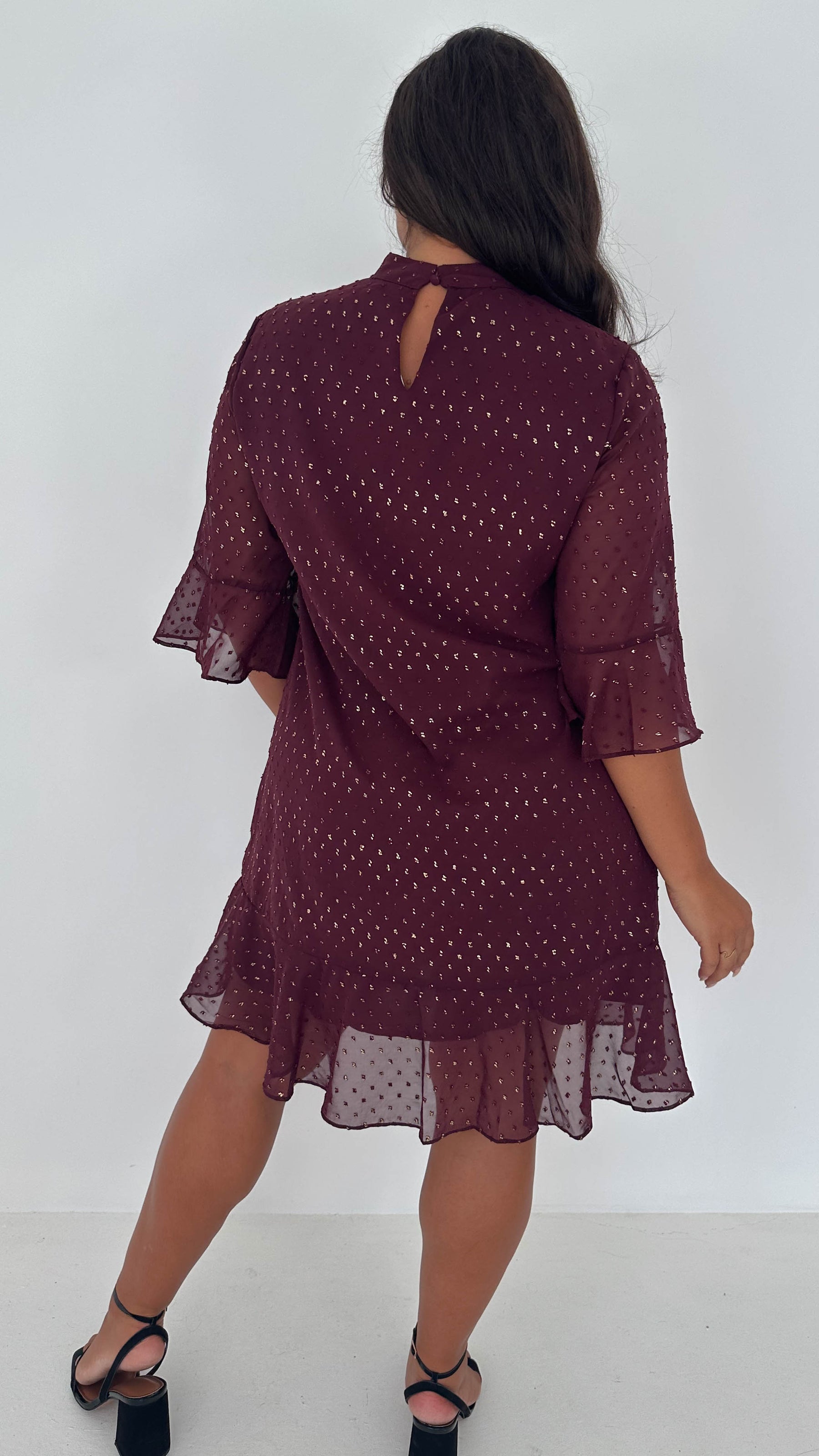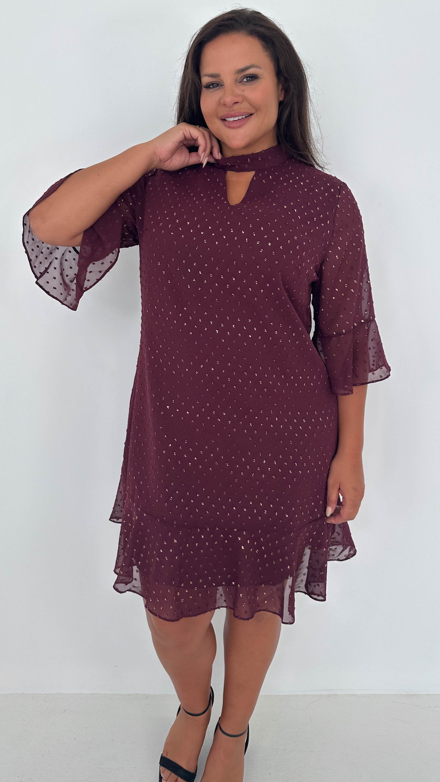 CurveWow Gold Spot Keyhole Shift Dress Plum