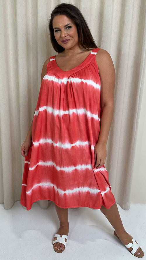CurveWow Ruched Chest Keyhole Maxi Dress Tye Dye