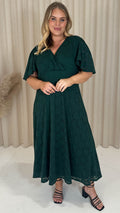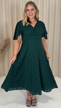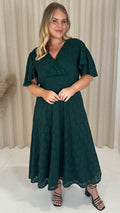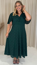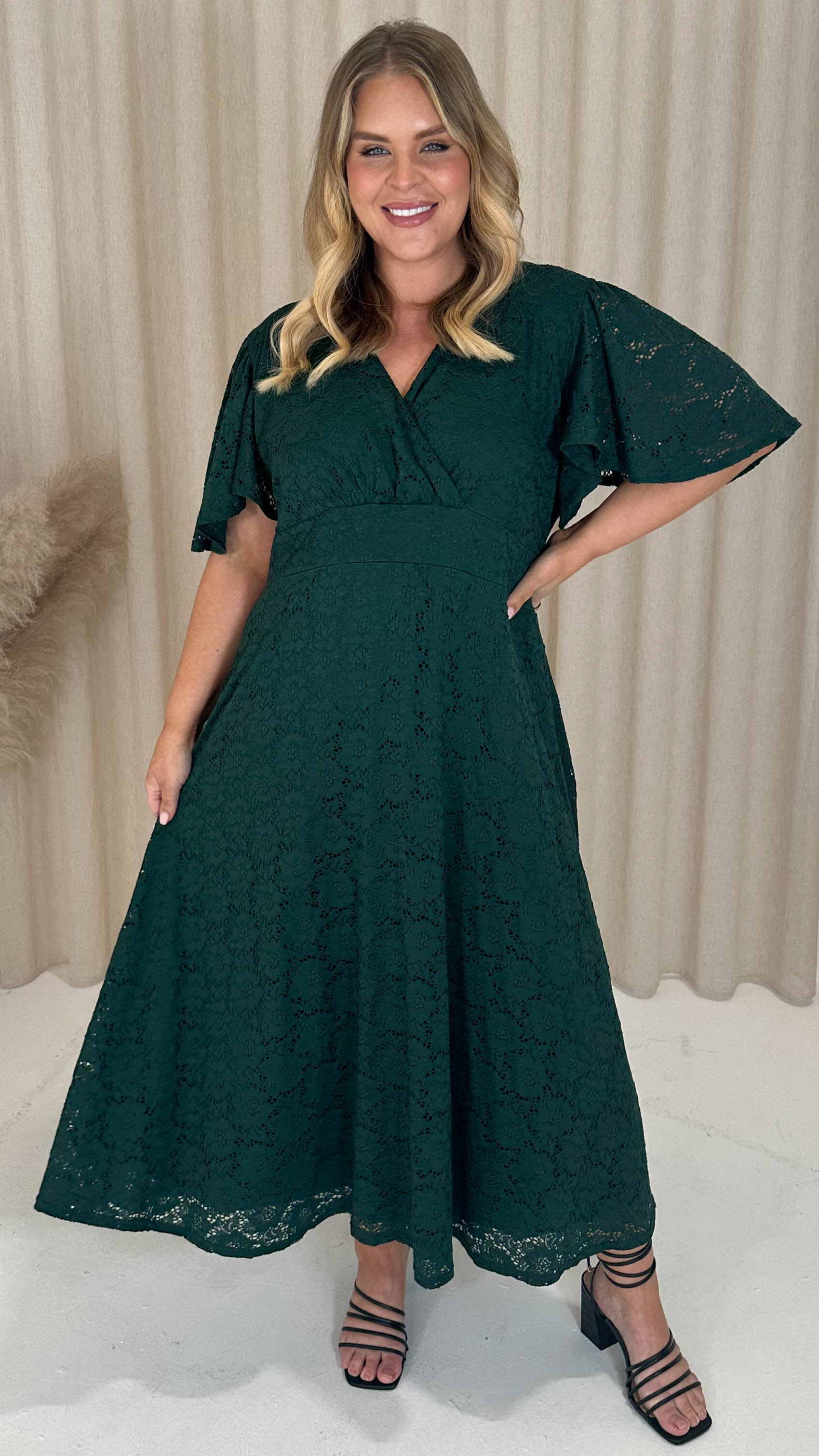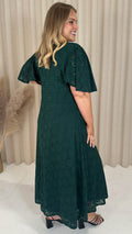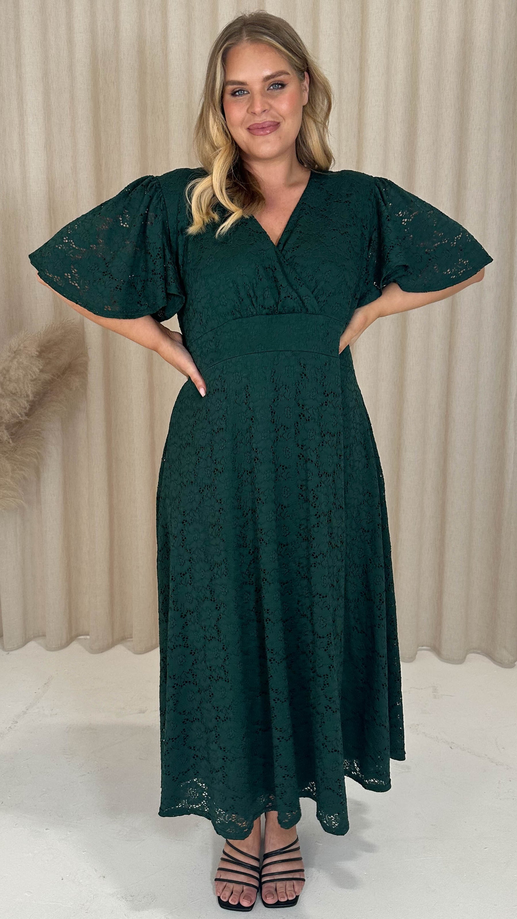 CurveWow Lace Angel Sleeve Dress Forest Green