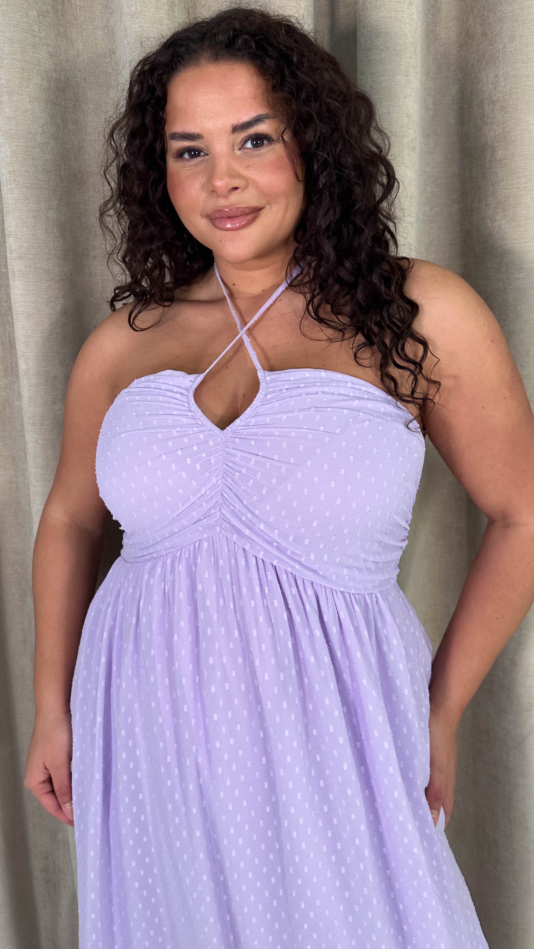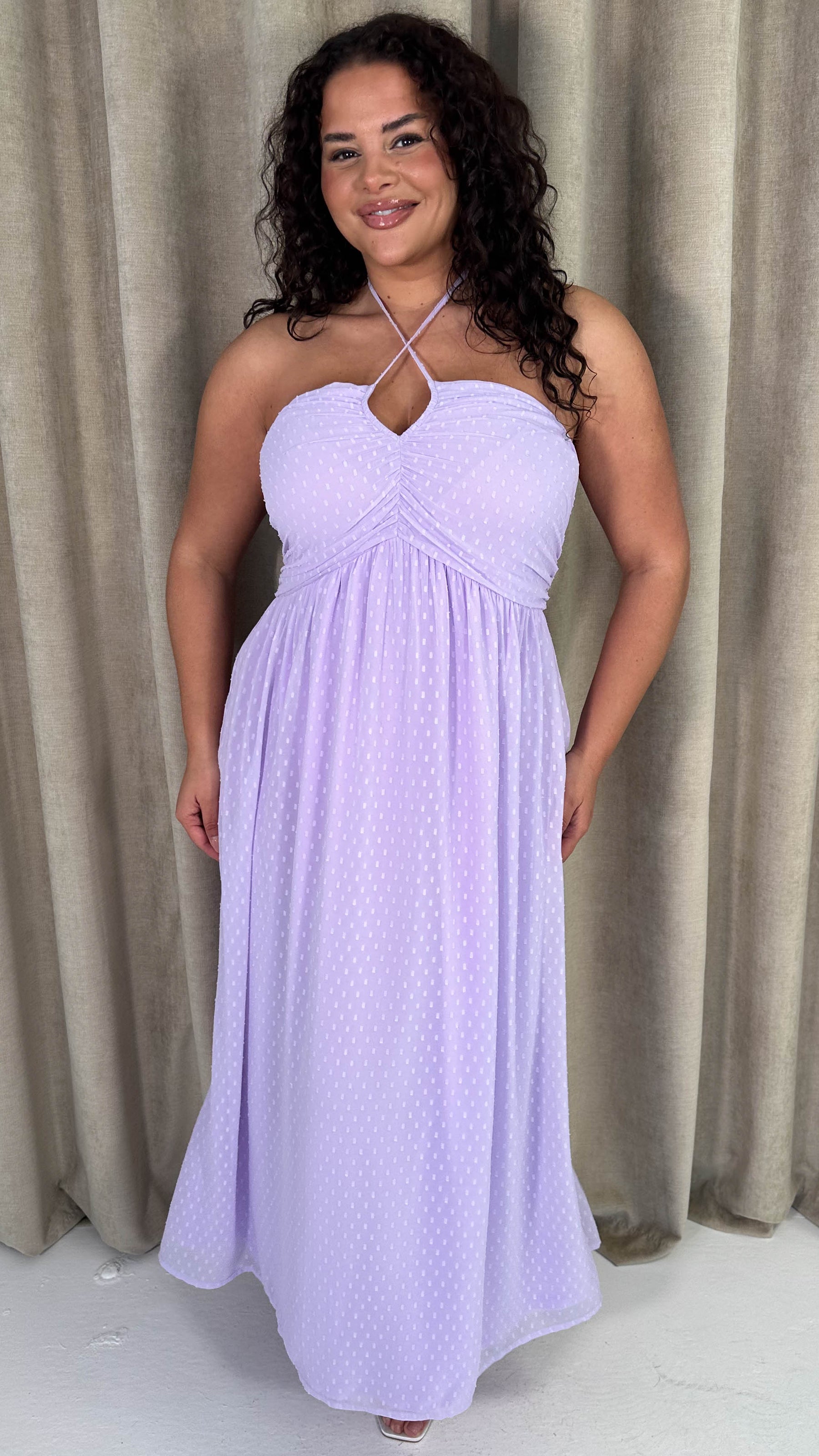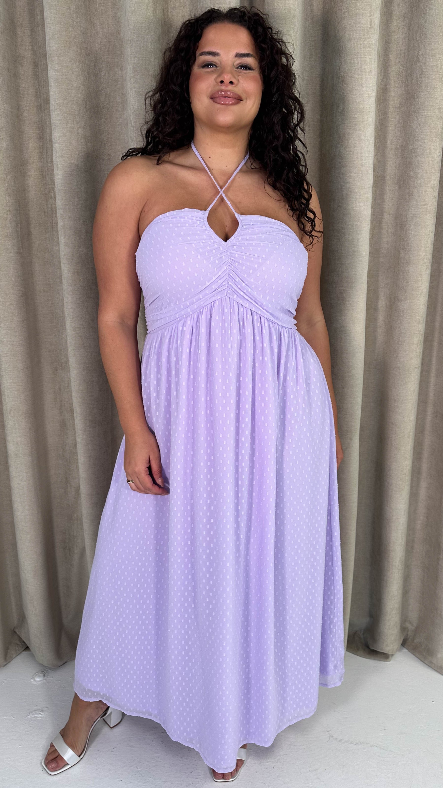 CurveWow Maxi Halter Neck Shirred Back Dress Pastel Lilac