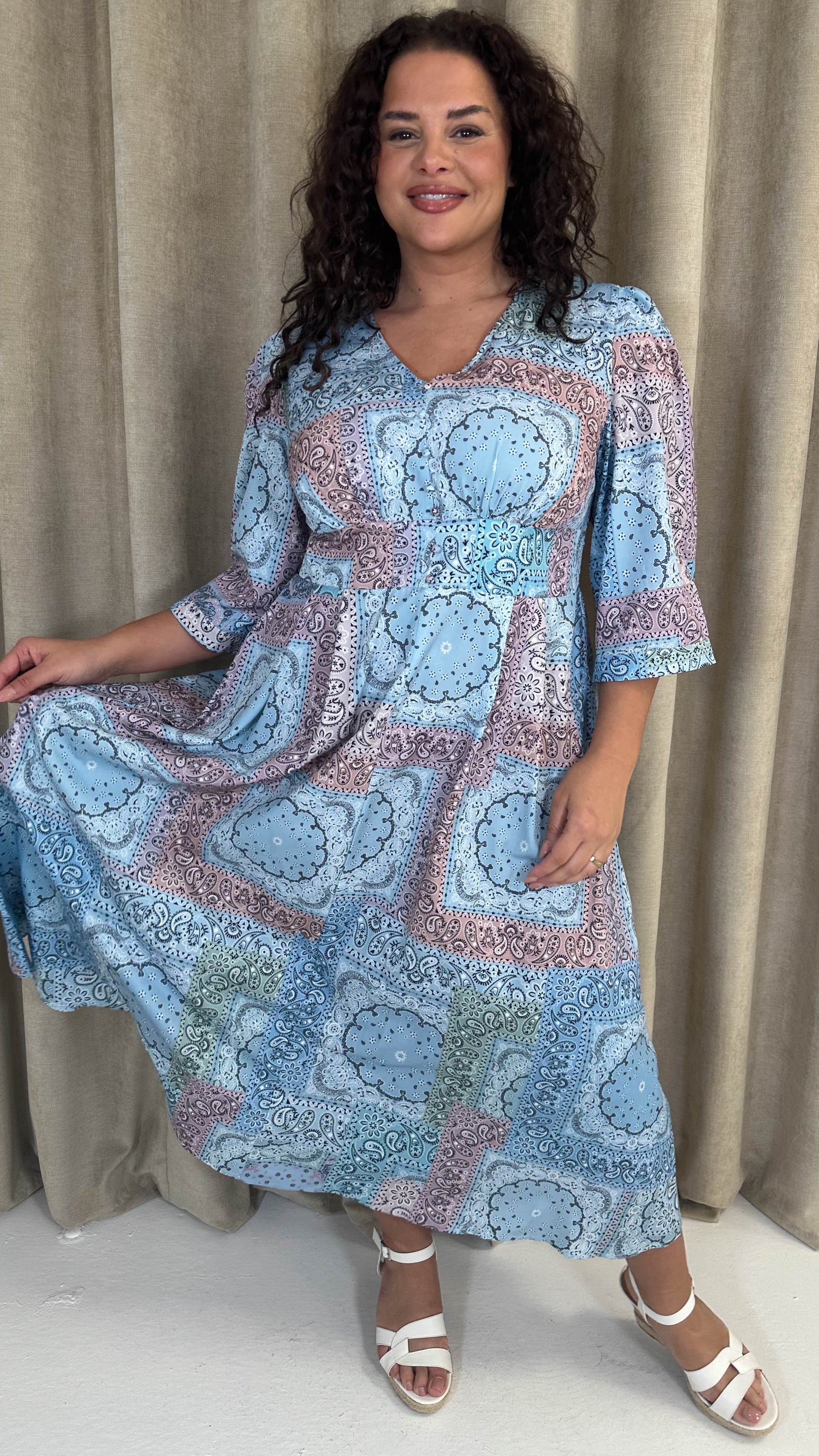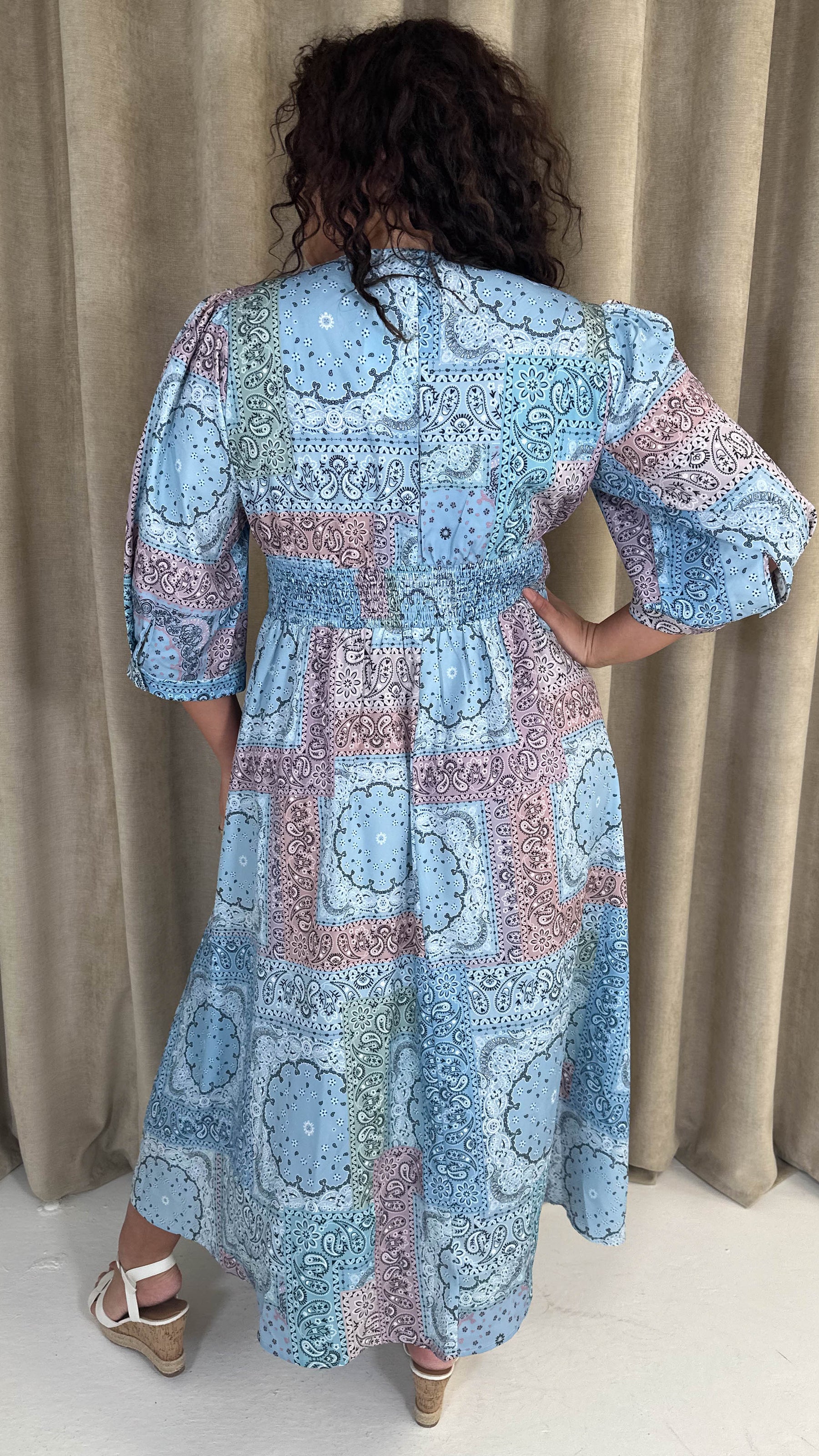 CurveWow Dobby Shirred Bodice Midi Dress Sage Green