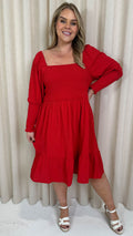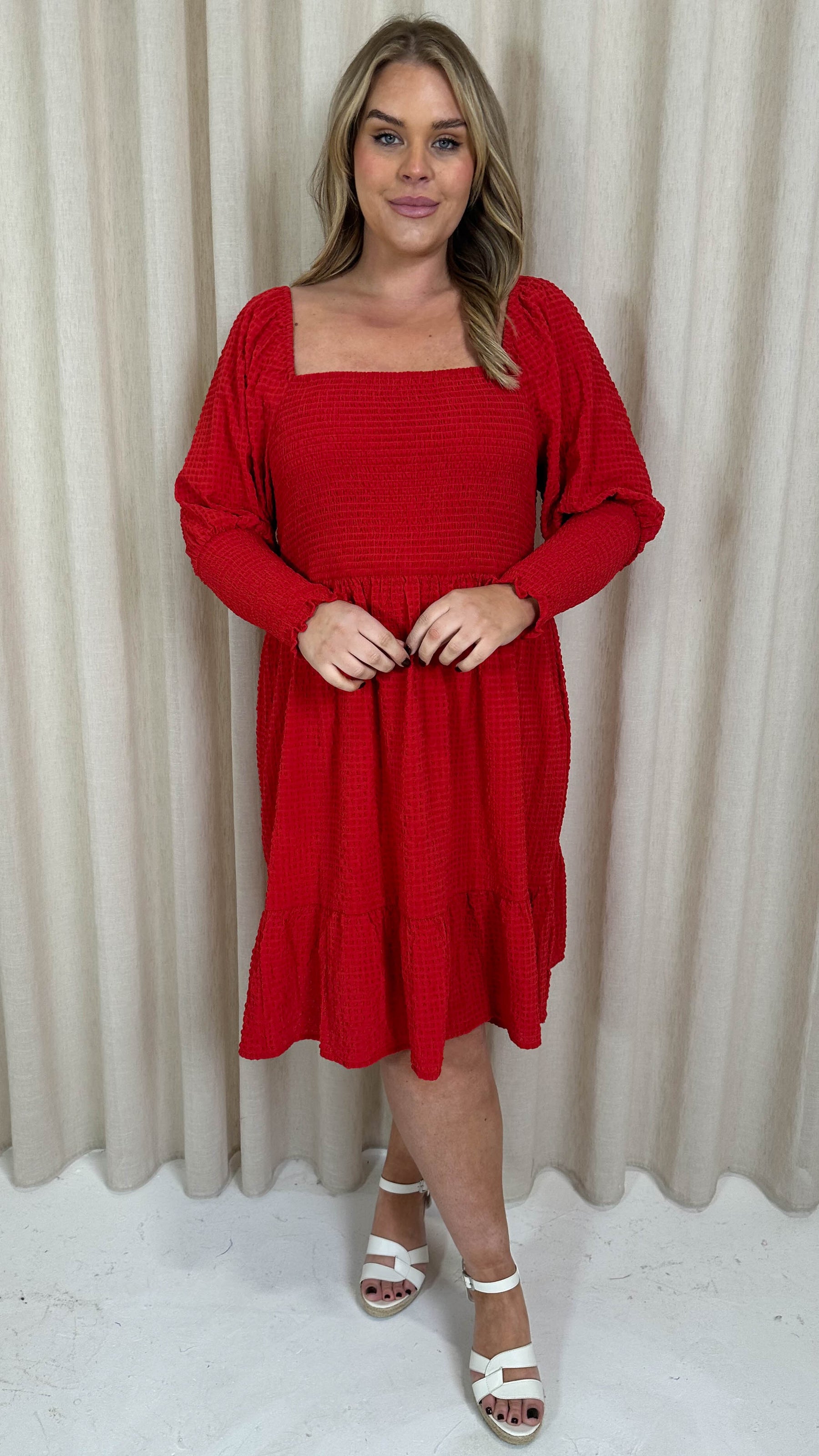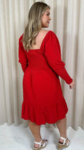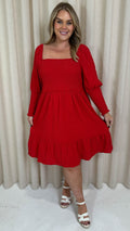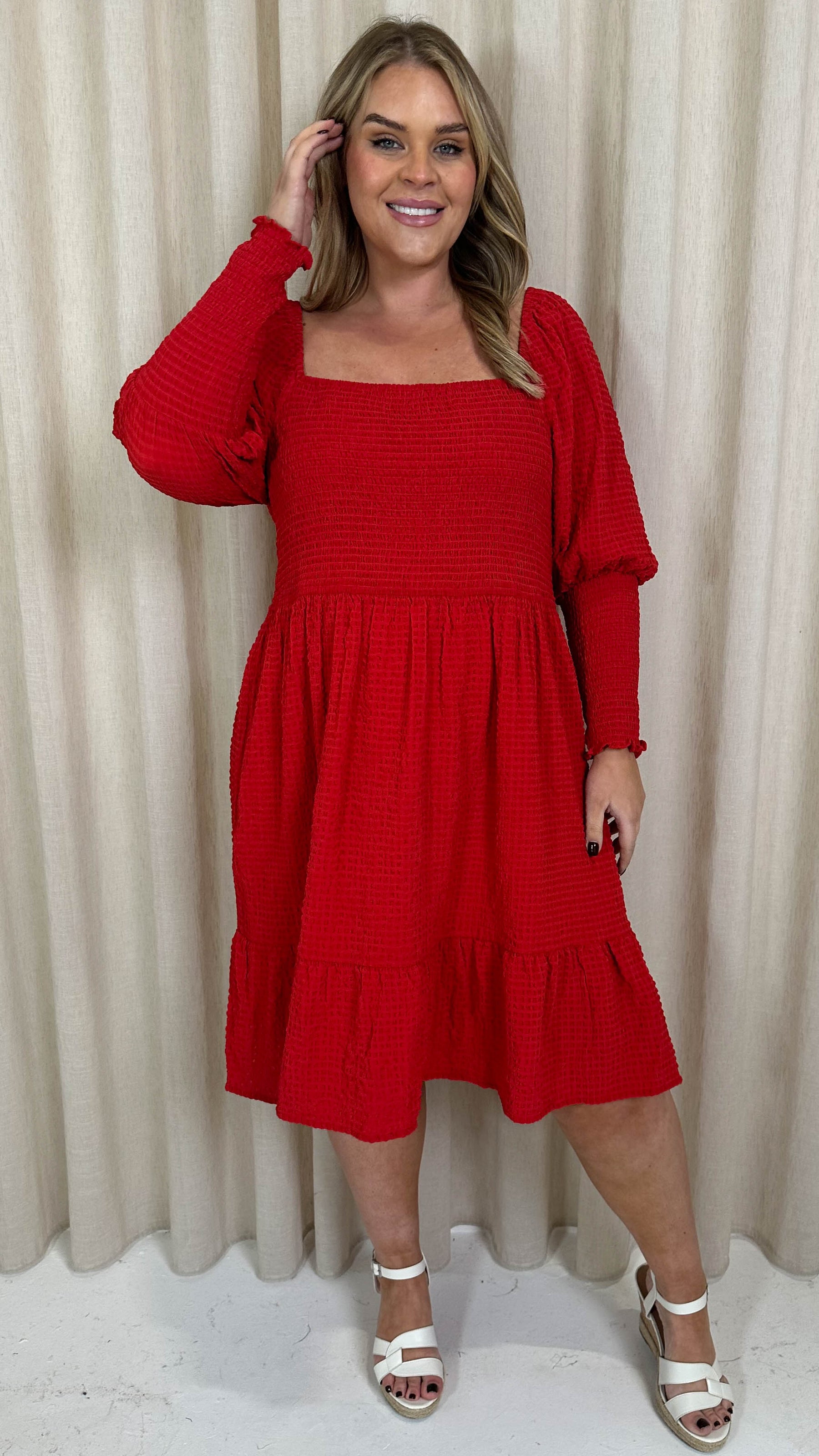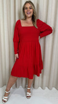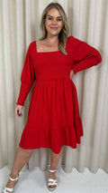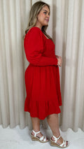 CurveWow Seersucker Puff Sleeve Dress Bright Red