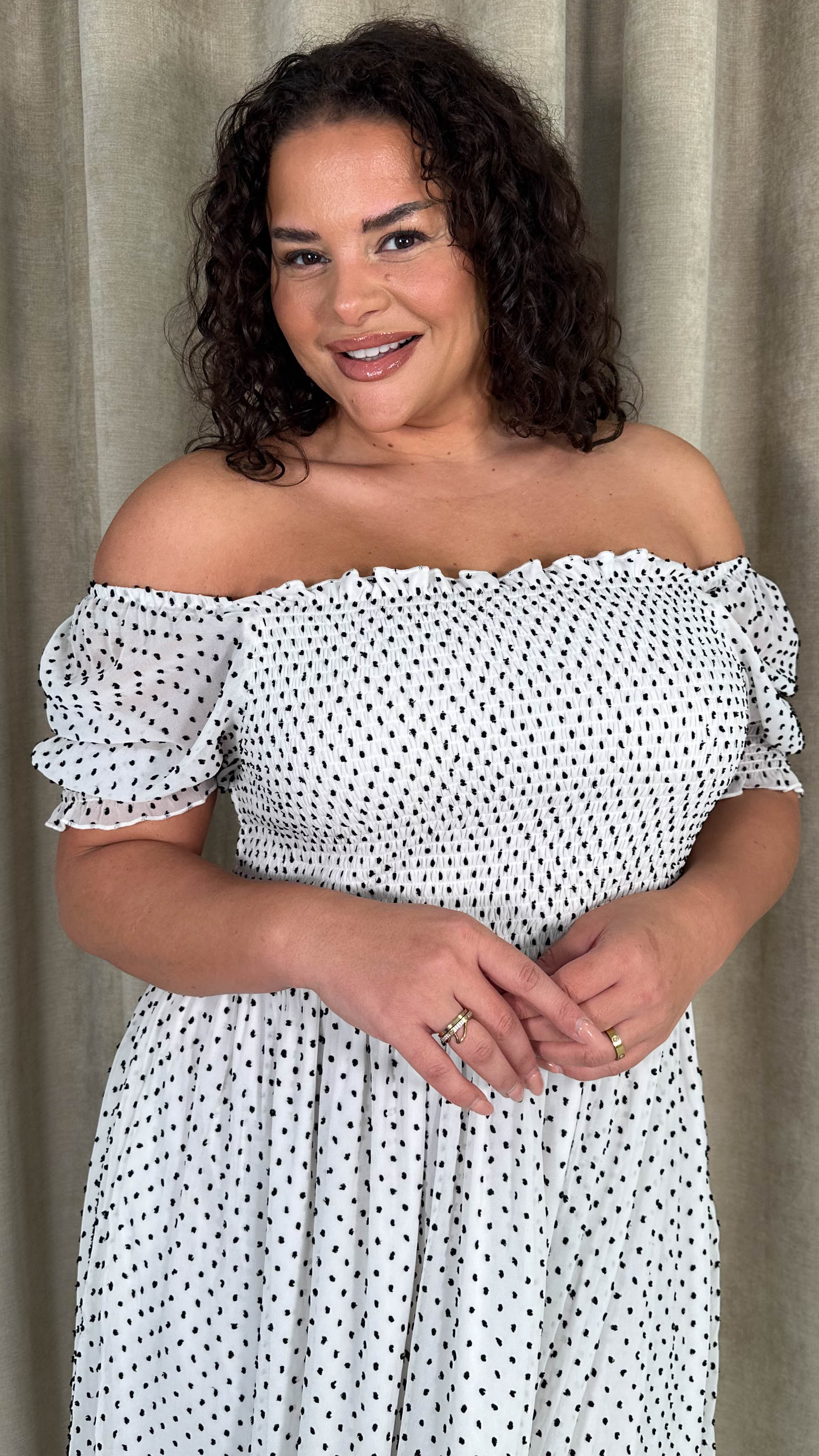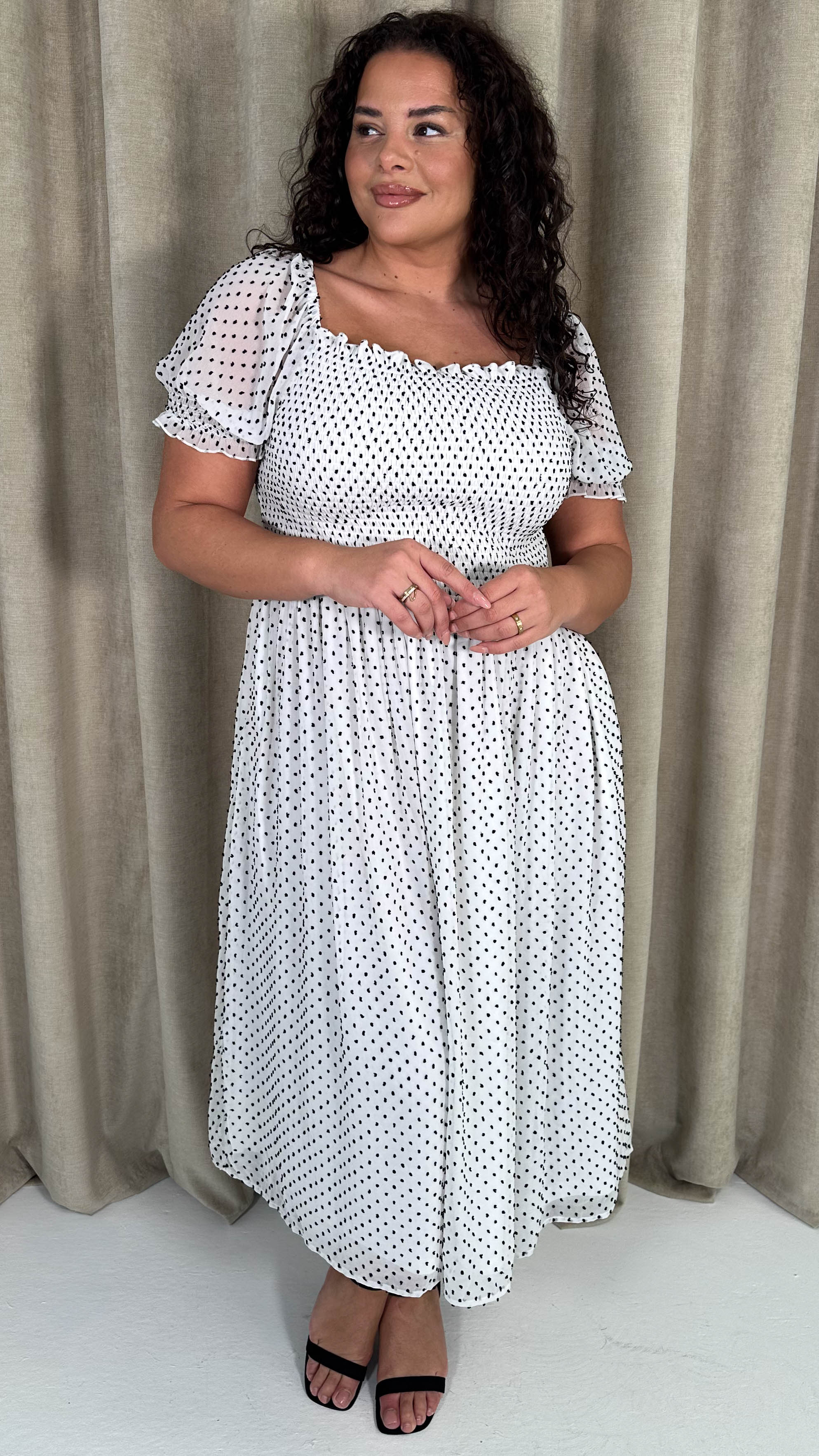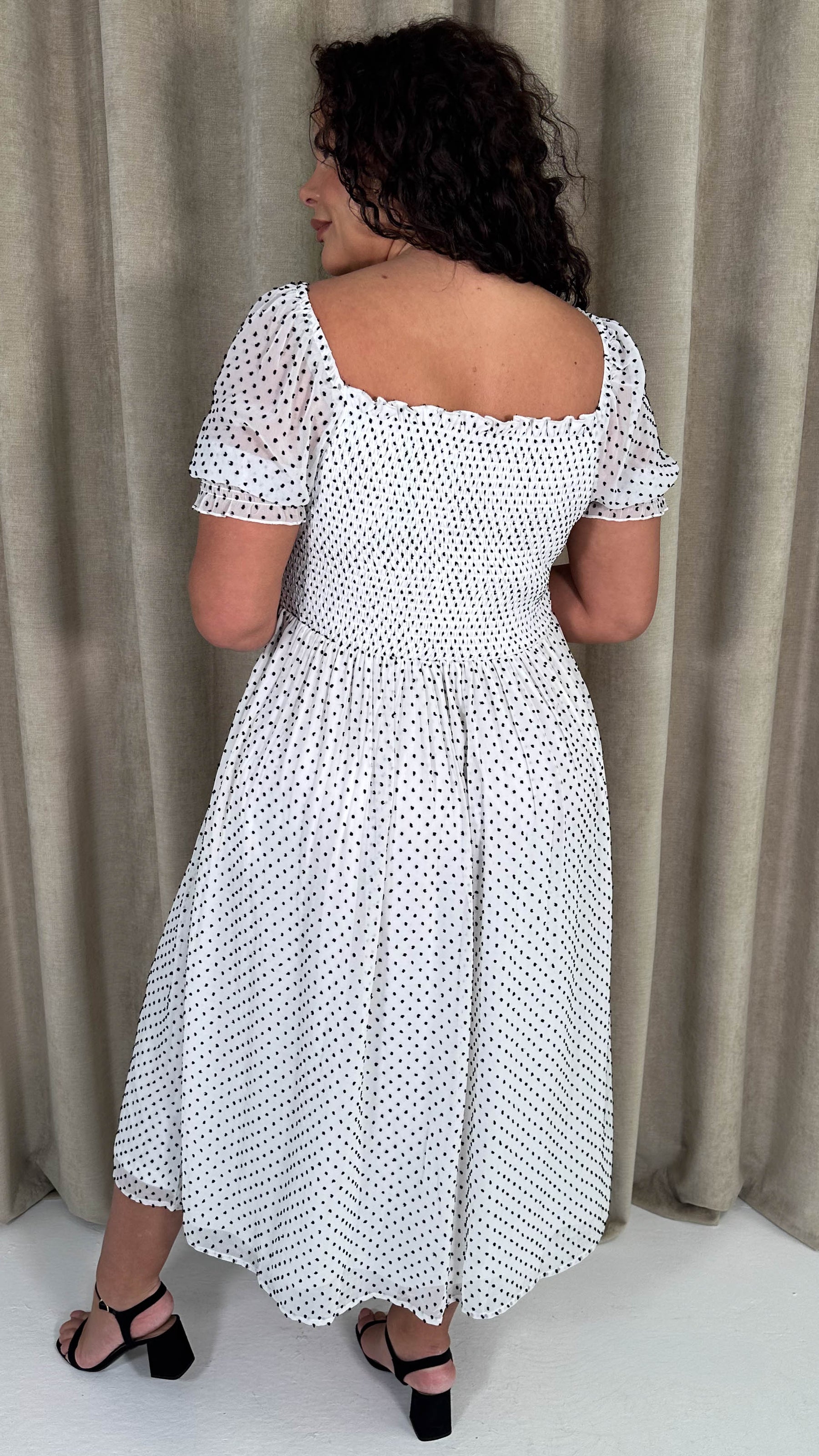 CurveWow Puff Sleeve Midi Dress White & Black Spot