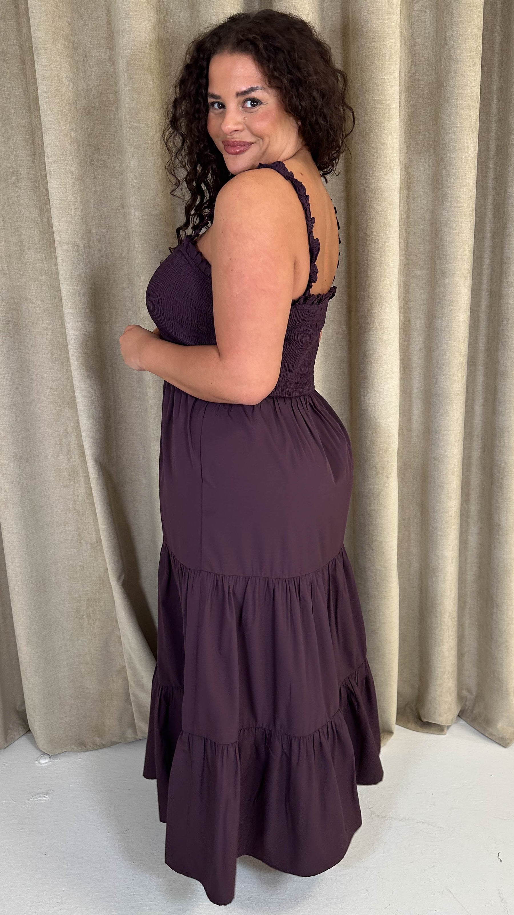 CurveWow Shirred Top Cami Maxi Dress Purple