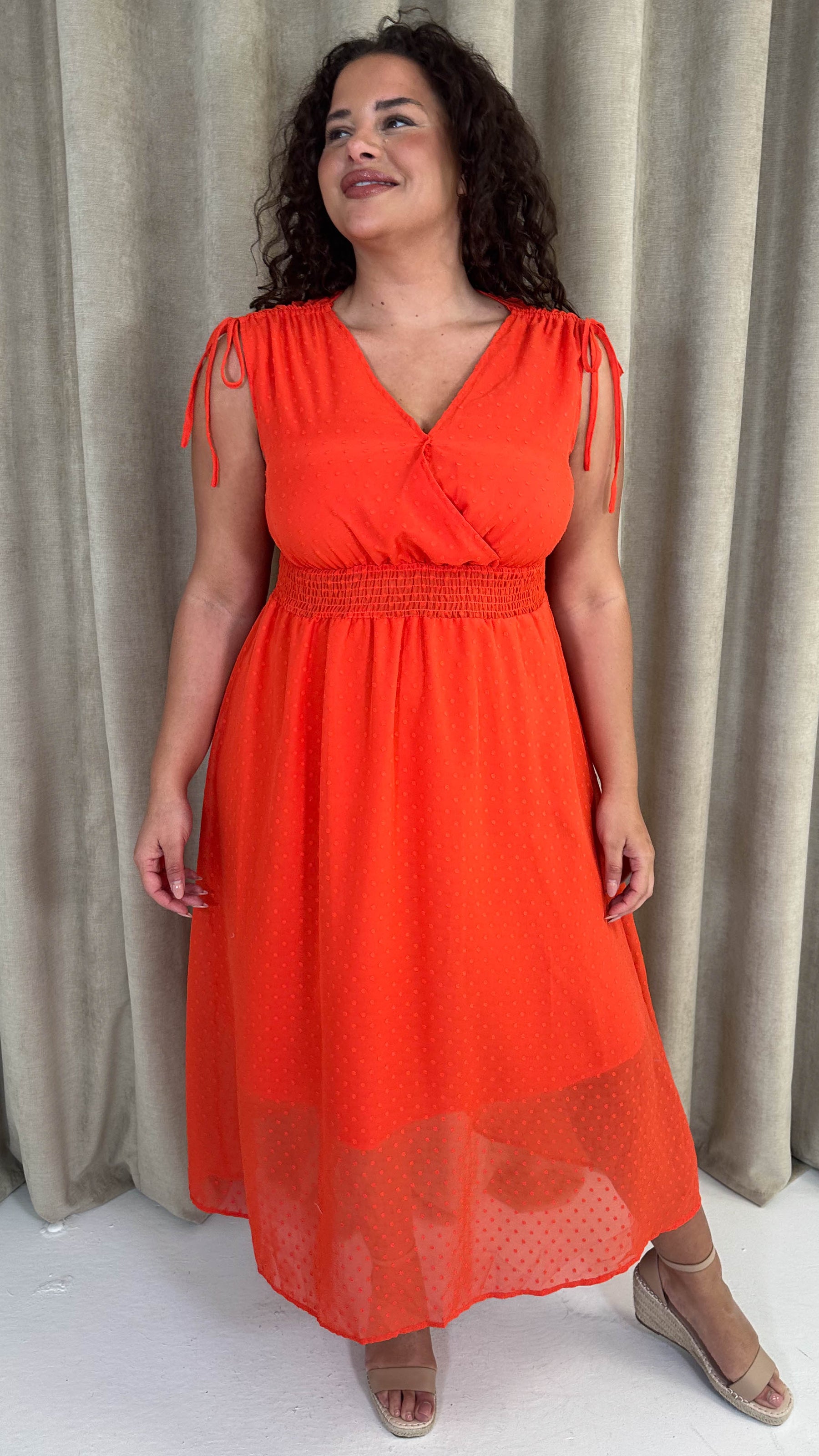 CurveWow Shirred Waist Dobby Midaxi Dress Orange