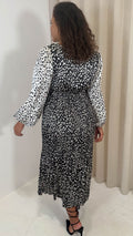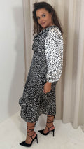 CurveWow Balloon Sleeve Wrap Mini Dress Black & White Leopard