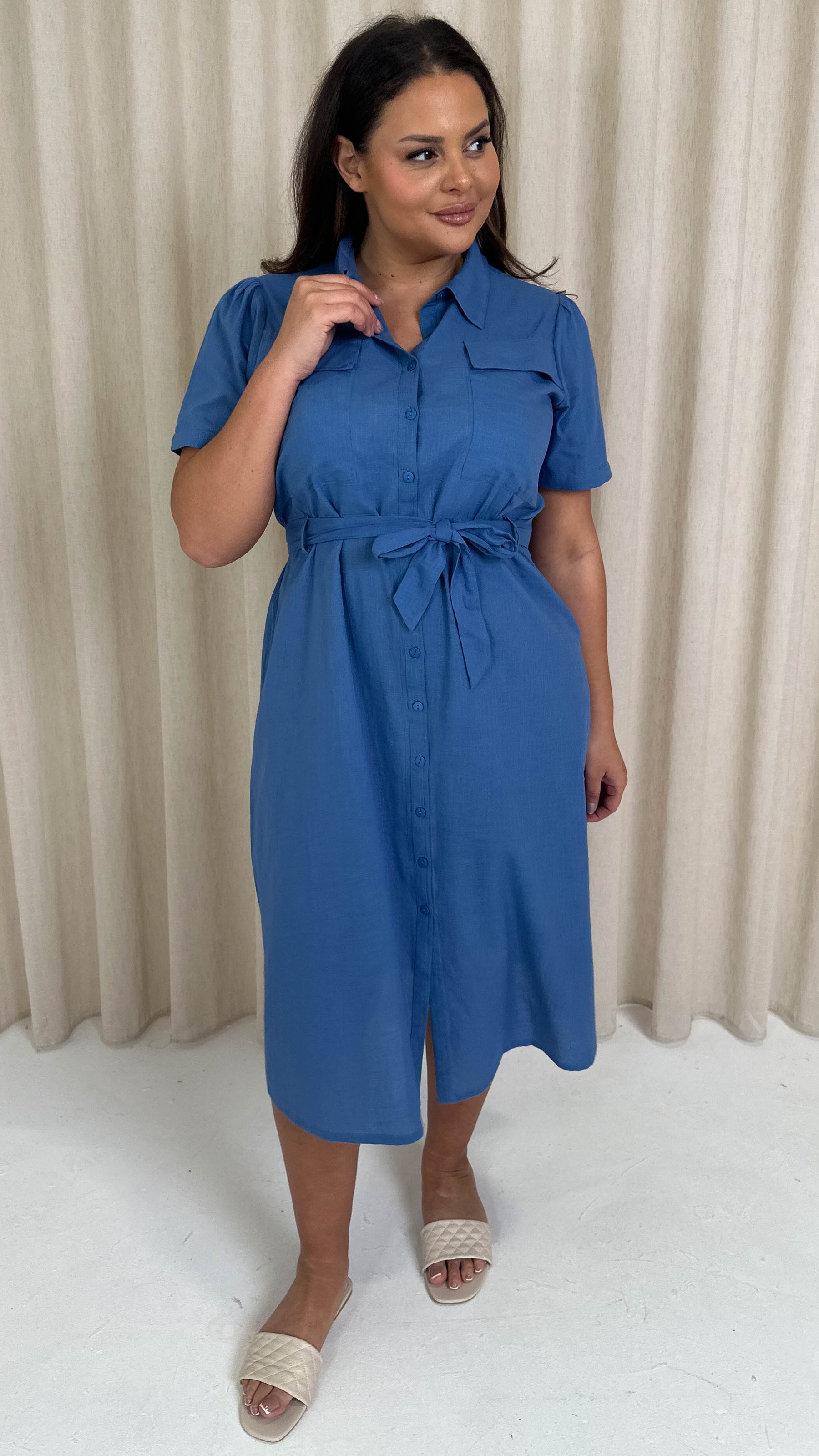 CurveWow SS Pocket Utility Dress Blue