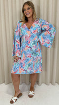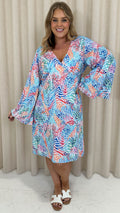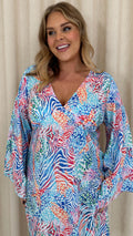 CurveWow V Neck Long Angel Sleeve Mini Dress Mixed Animal