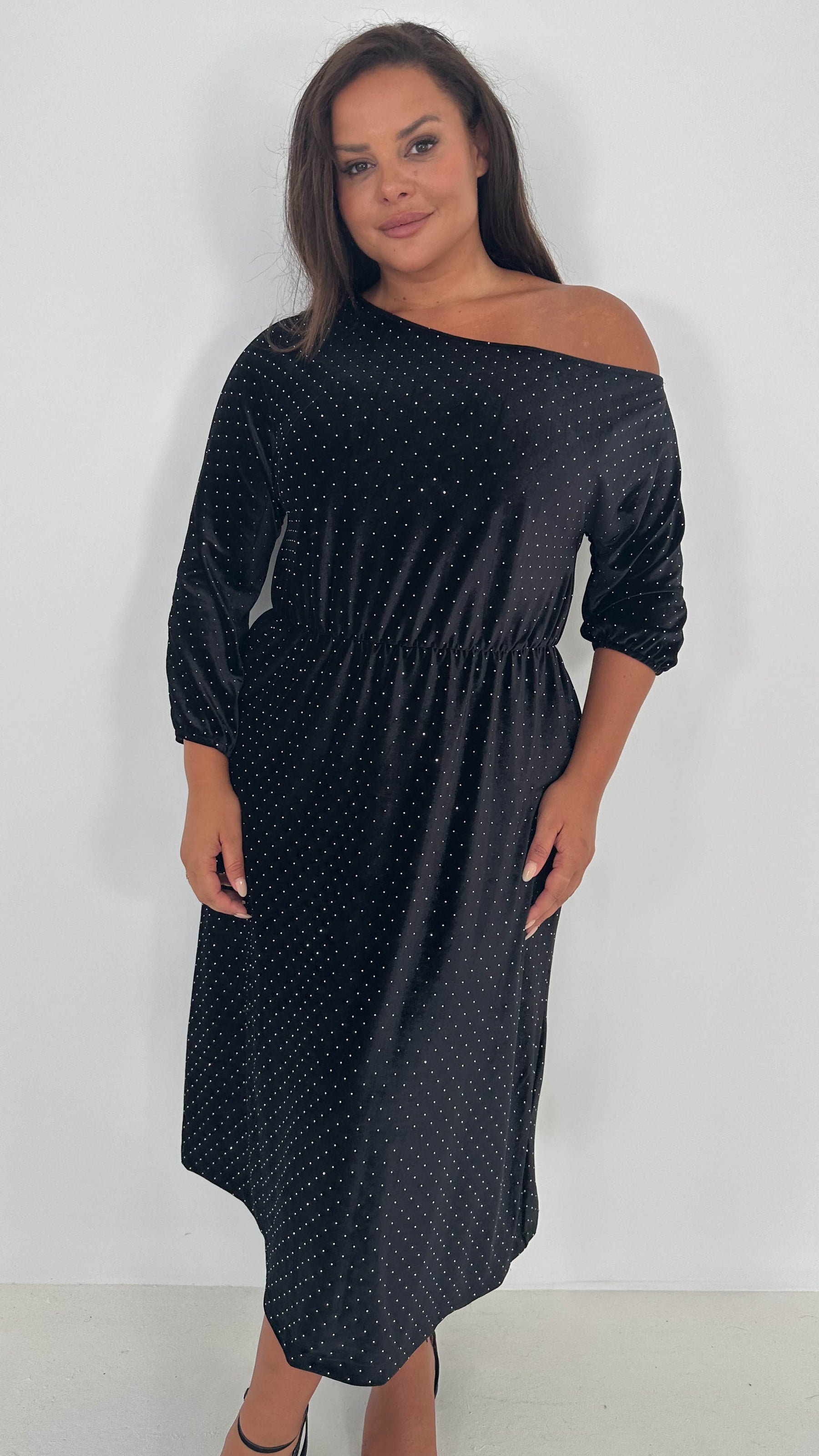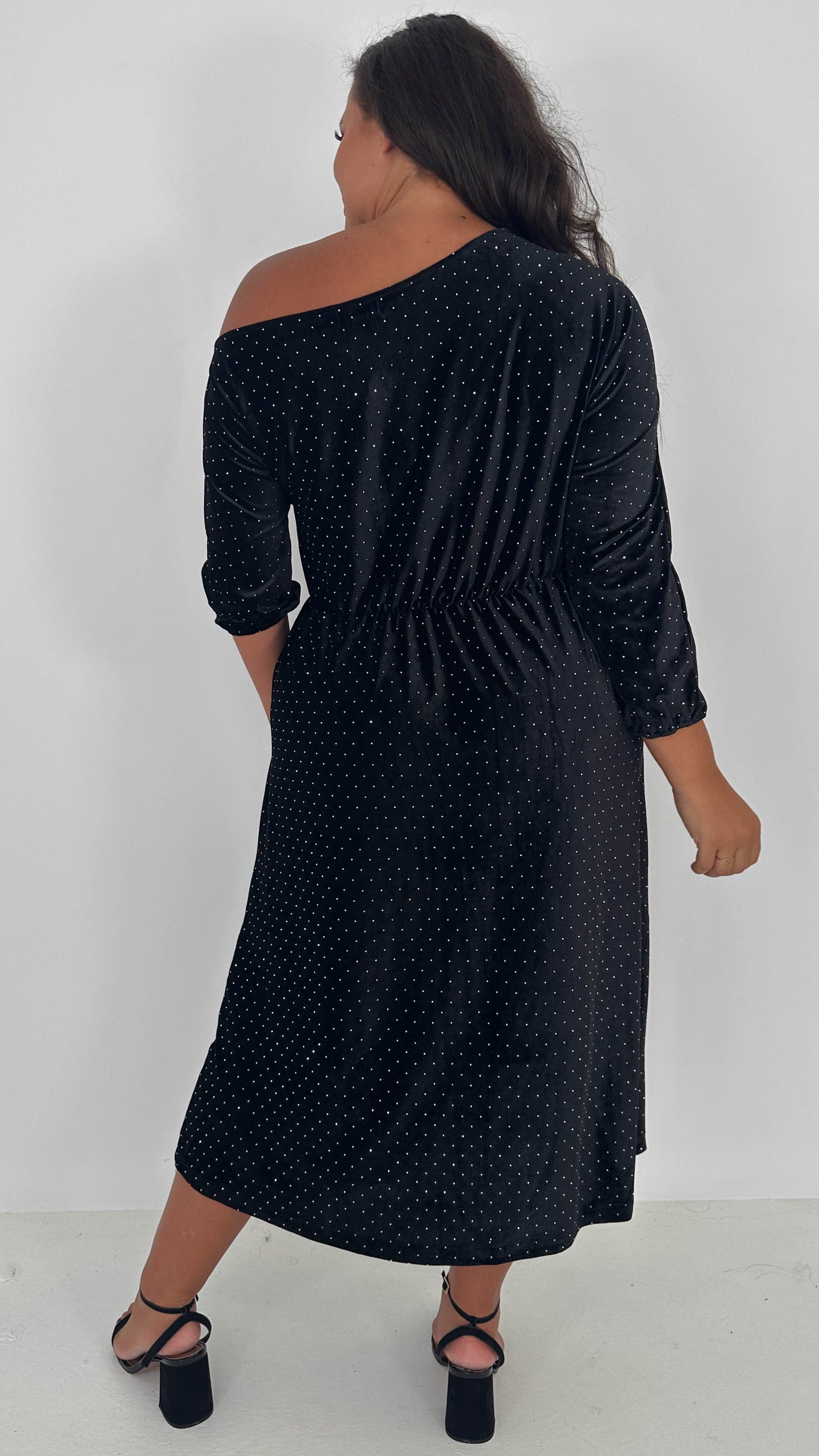 CurveWow Velvet Off The Shoulder Midi Dress Black