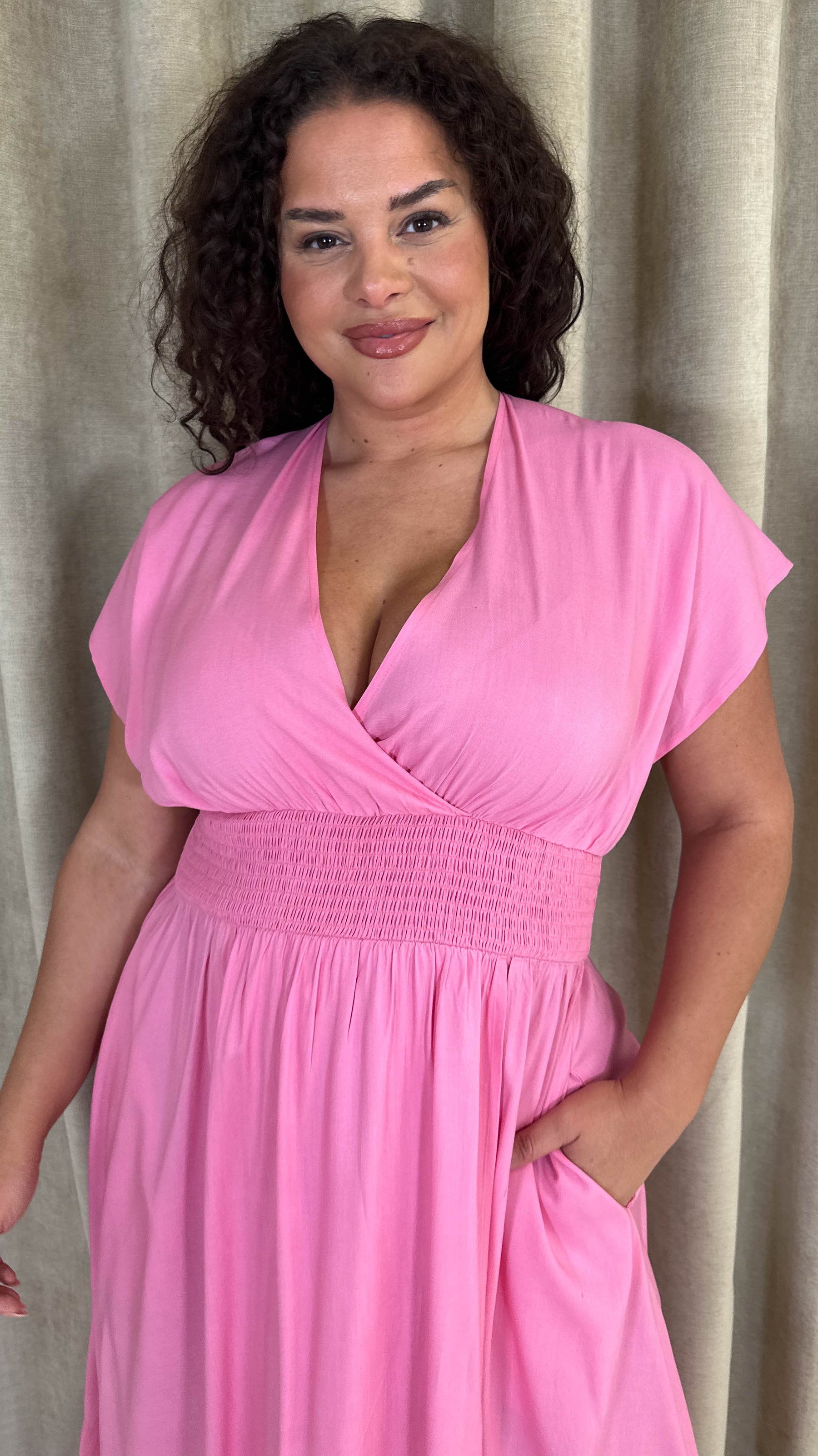 CurveWow Wrap Front Sundress Pink
