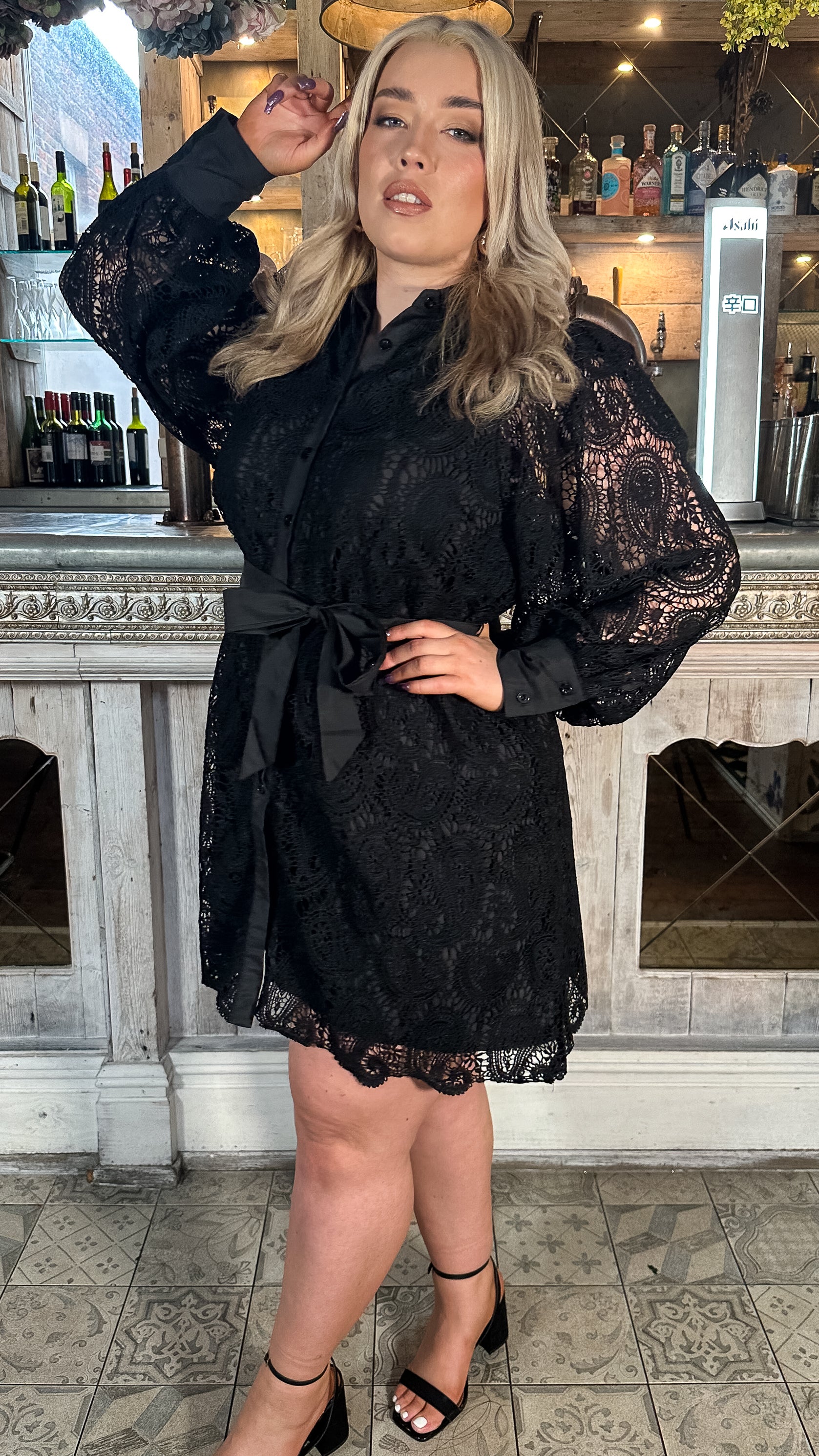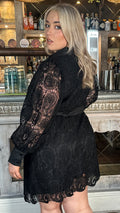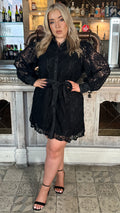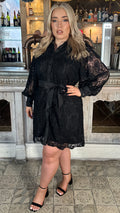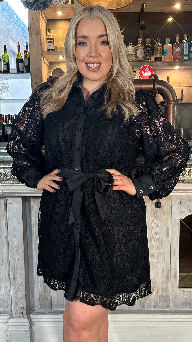 CurveWow Lace Tie Waist Shirt Dress Black