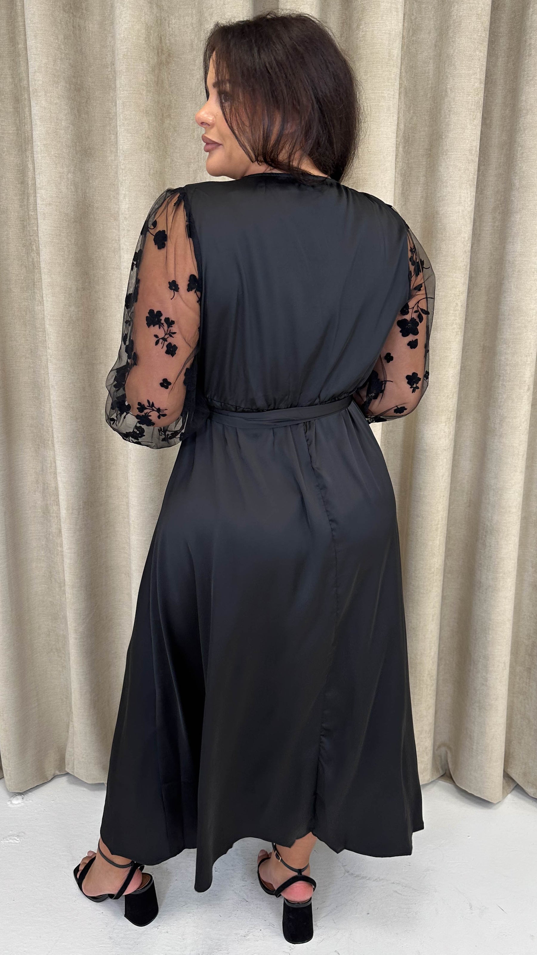 CurveWow Mesh Detail Wrap Midaxi Dress Black
