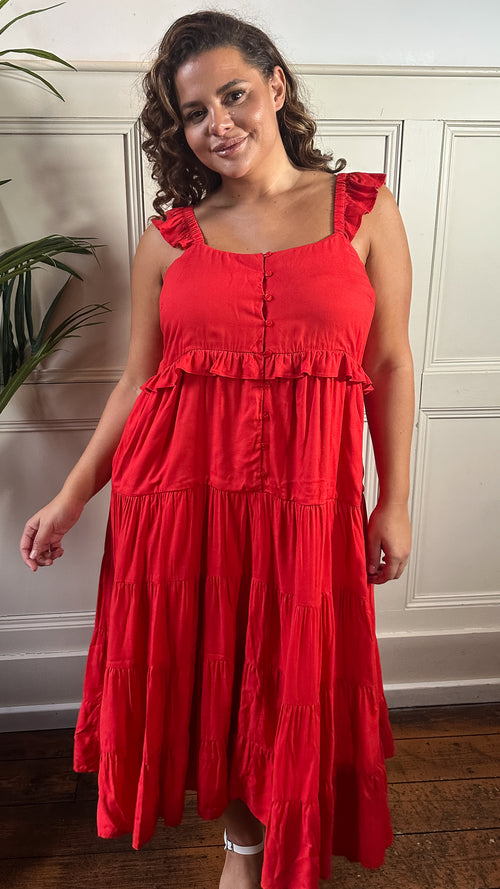 CurveWow Mesh Detail Wrap Midaxi Dress Red