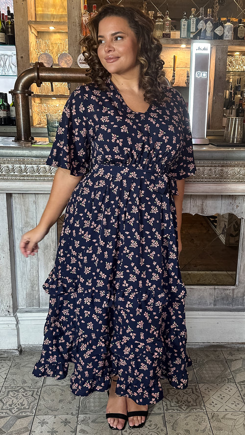 CurveWow Mesh Detail Wrap Midaxi Dress Black