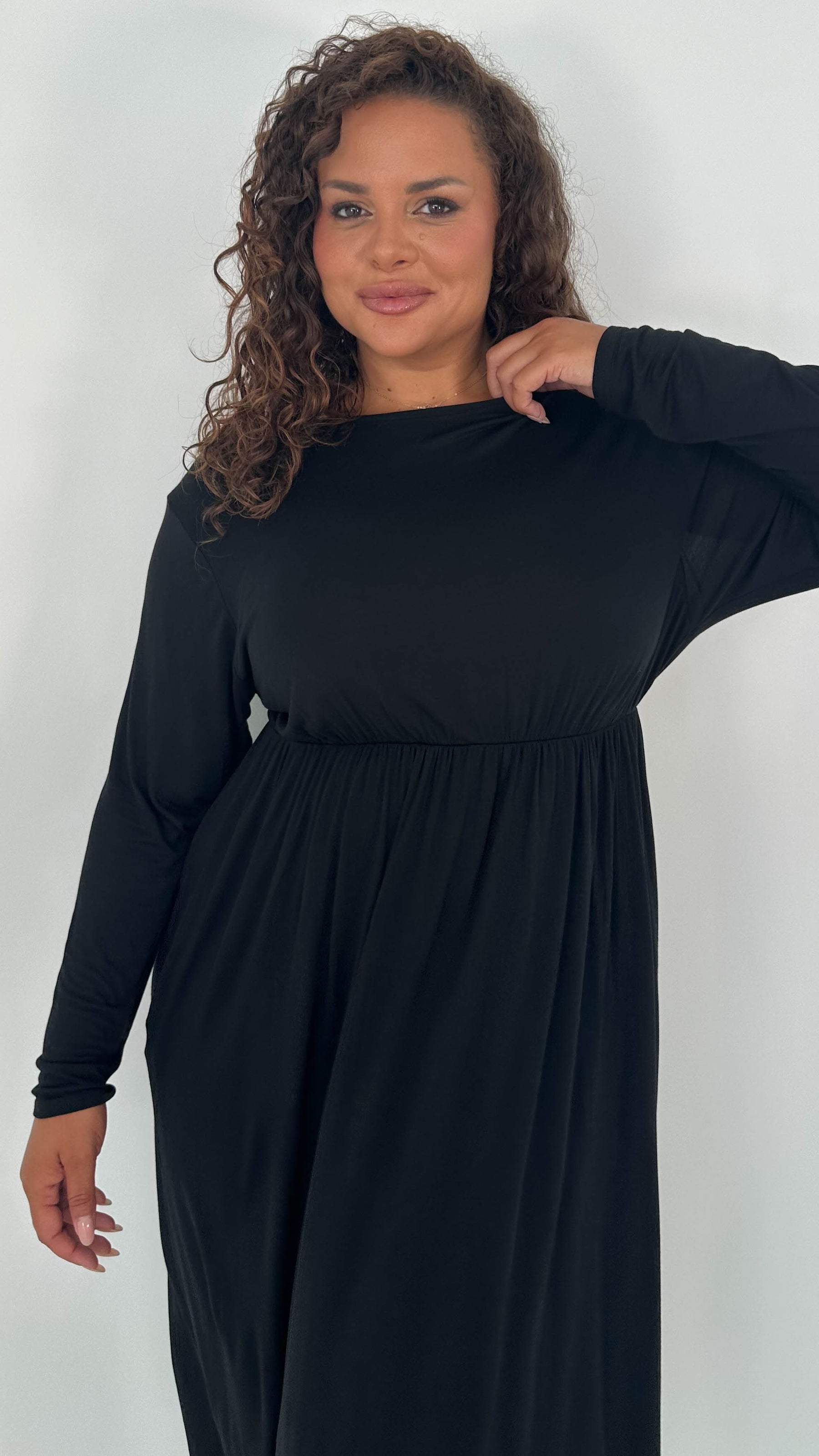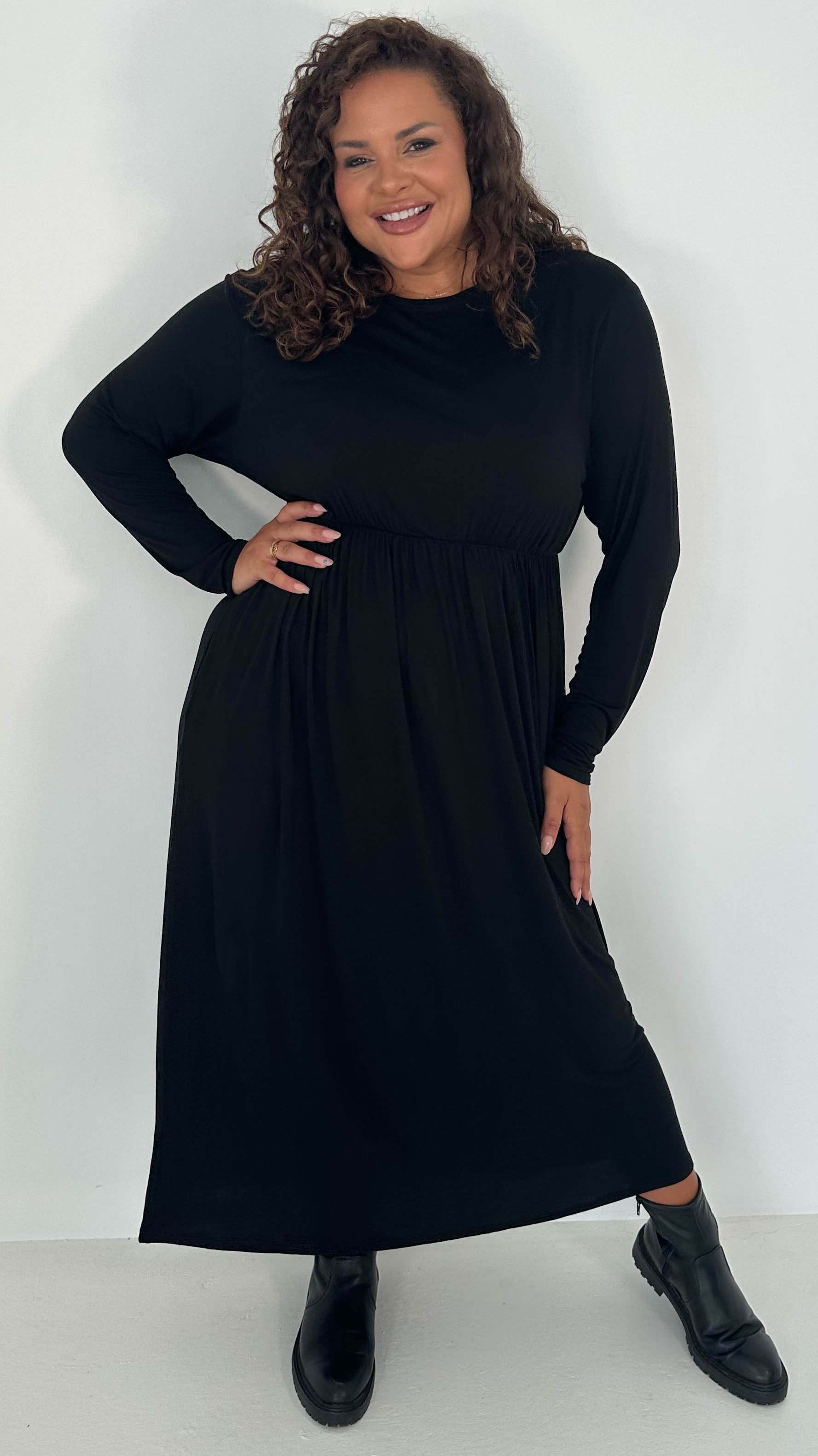 CurveWow Long Sleeve Jersey Pocket Midi Dress Black