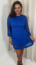 CurveWow Floral Lace Shift Dress Cobalt Blue