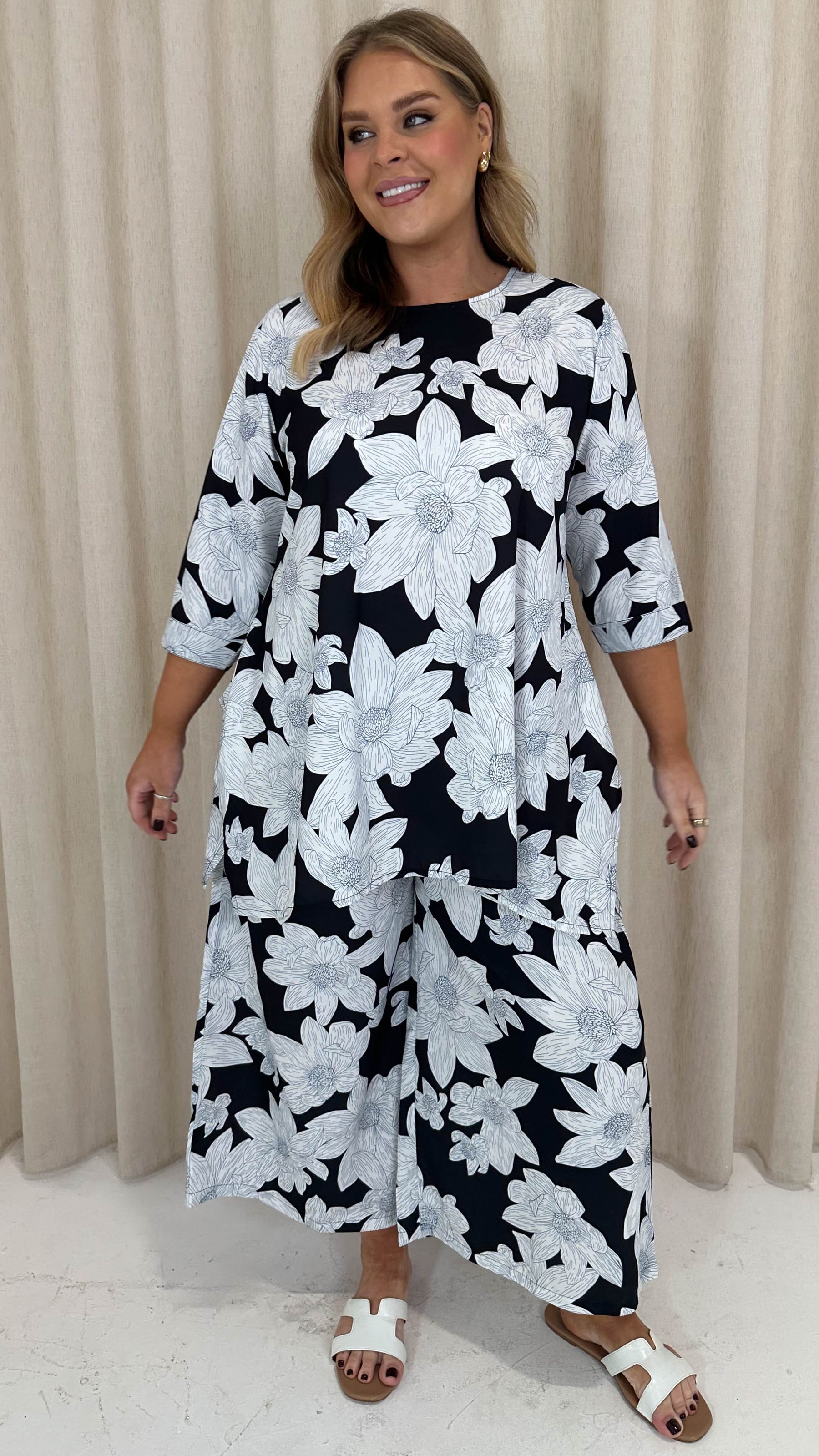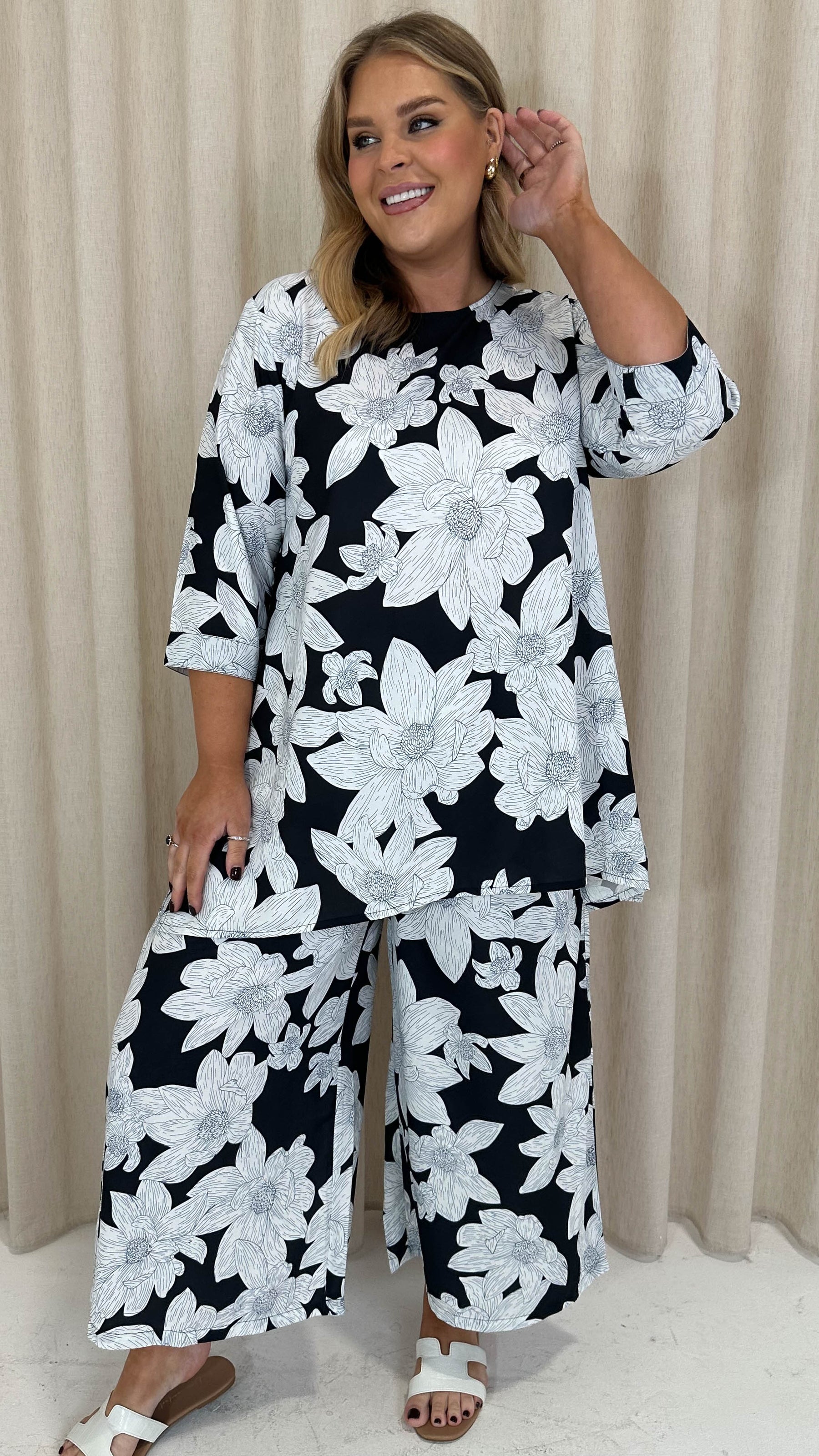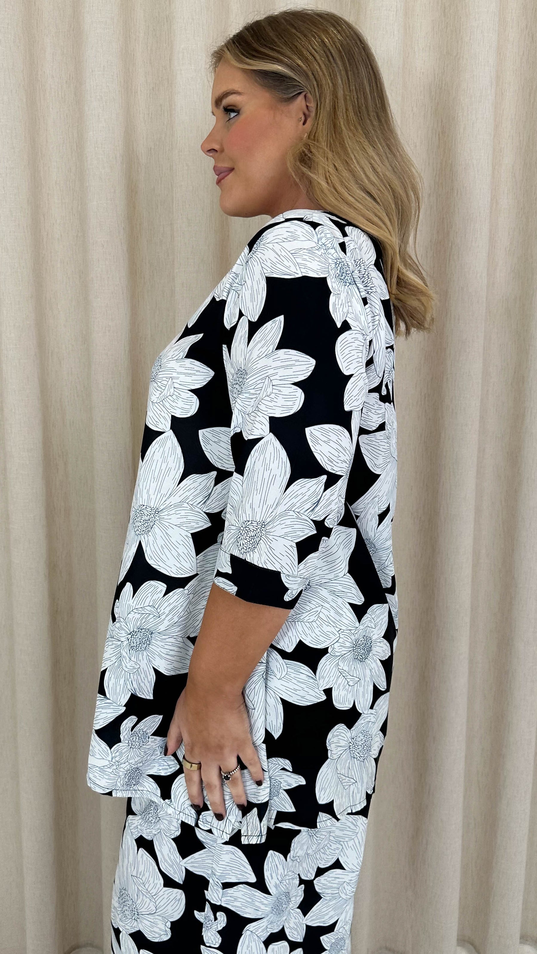CurveWow Mono Printed Drop Hem Top Mono Floral