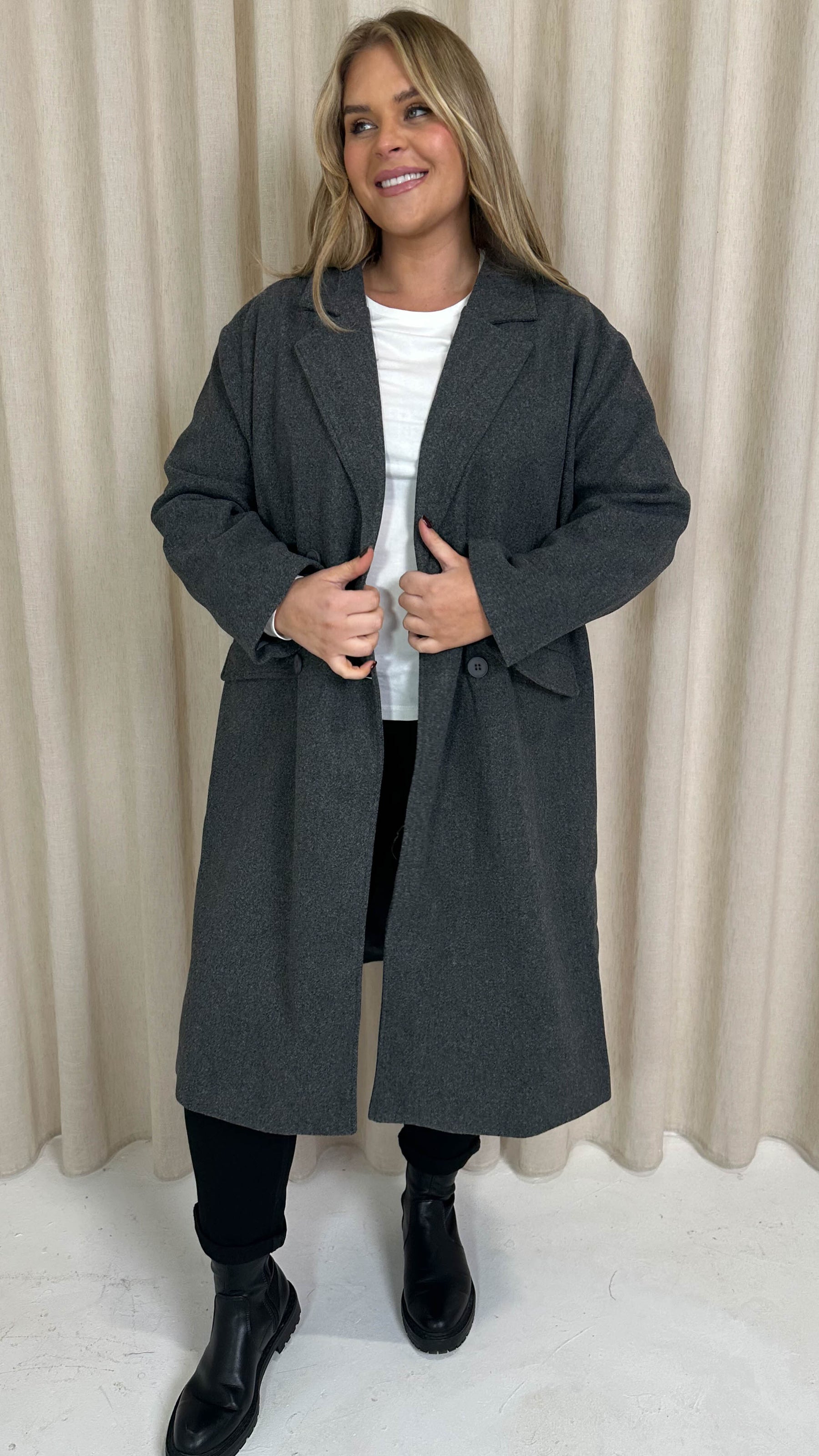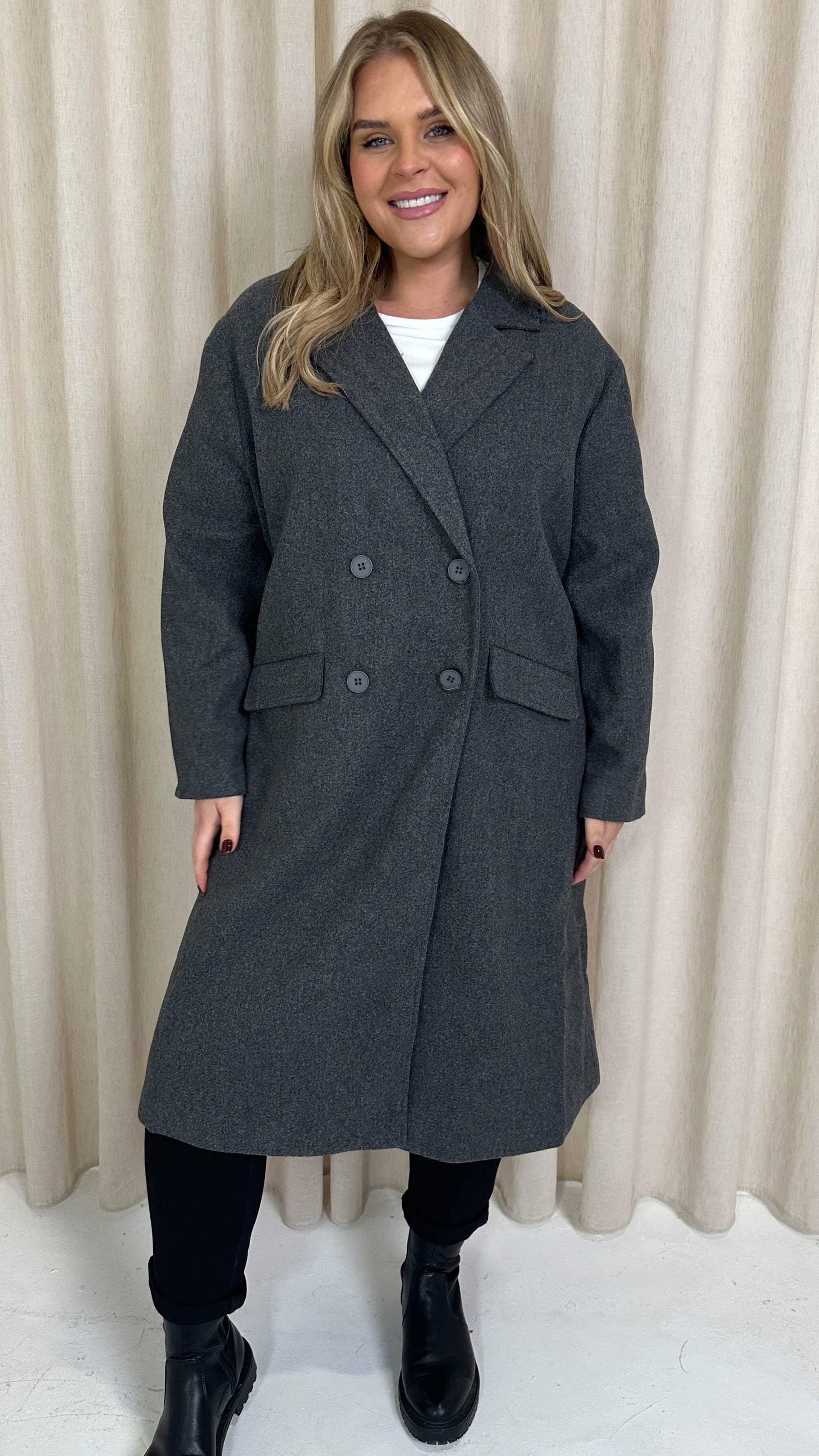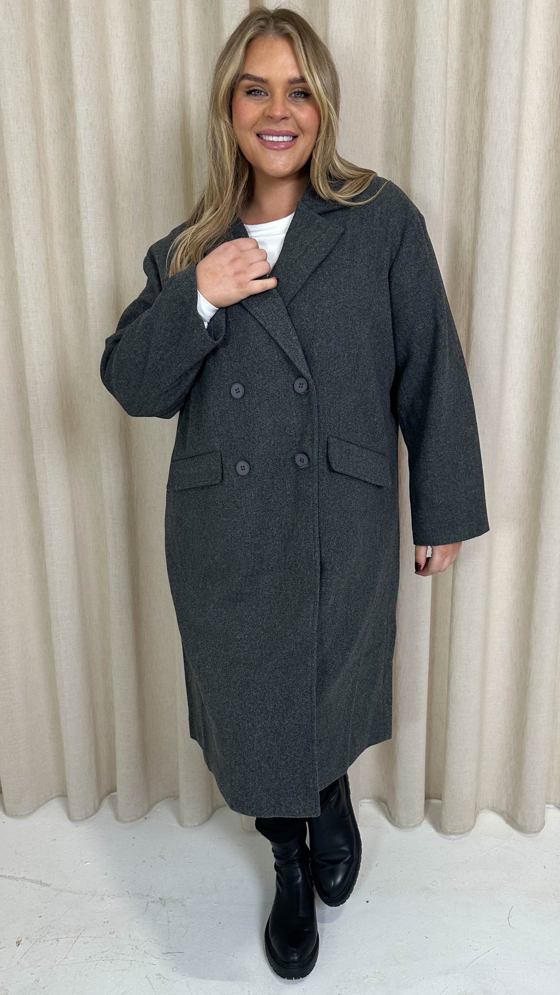 CurveWow Double Breasted Coat Charcoal