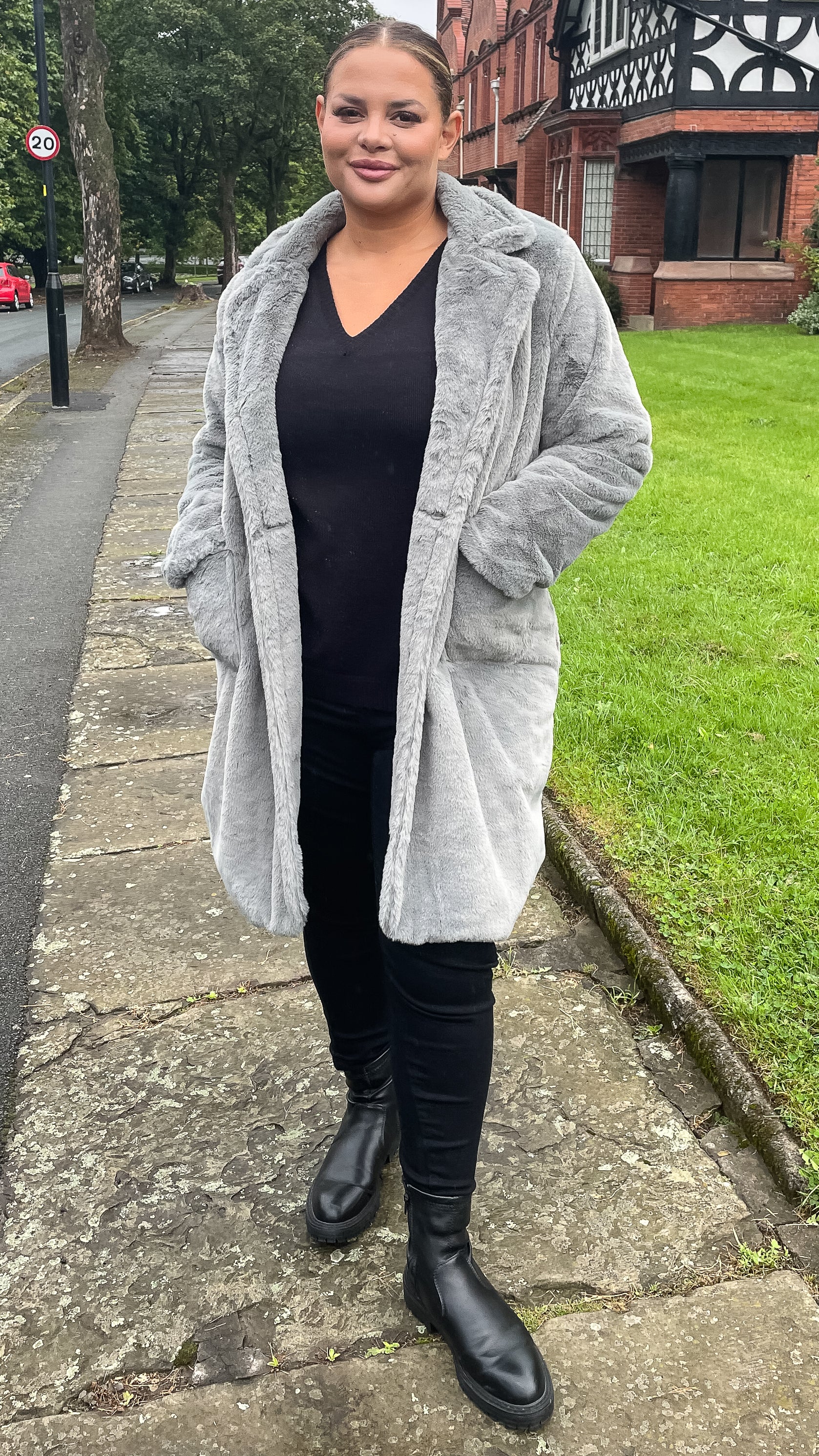 CurveWow Waterfall Maxi Coat Charcoal Grey