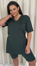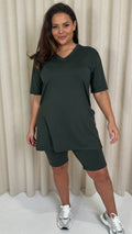 CurveWow Longline Side Split Top & Cycling Short Khaki