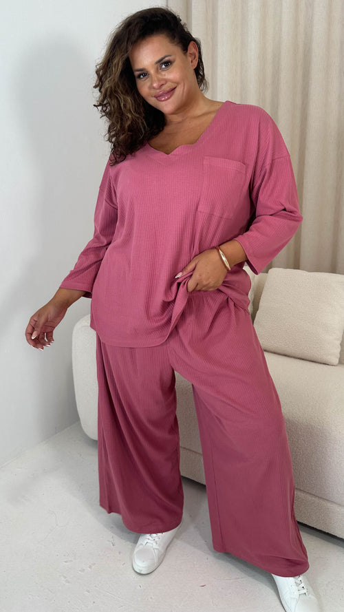 Discover matching plus size loungewear sets you can head from the sofa and out the front door in with our selection of co-ord lounge sets featuring slogans and comfortable rib sets to choose from.