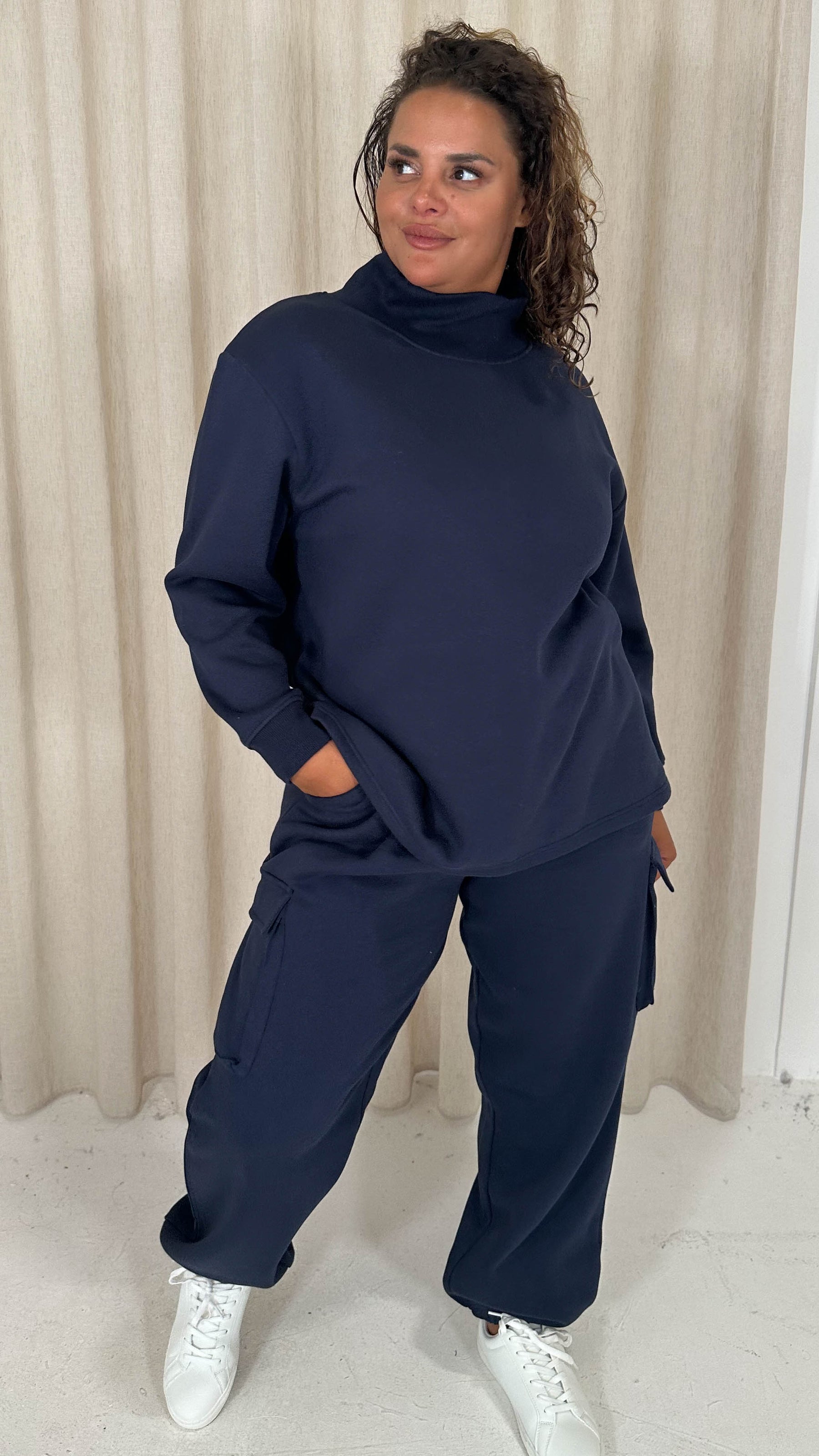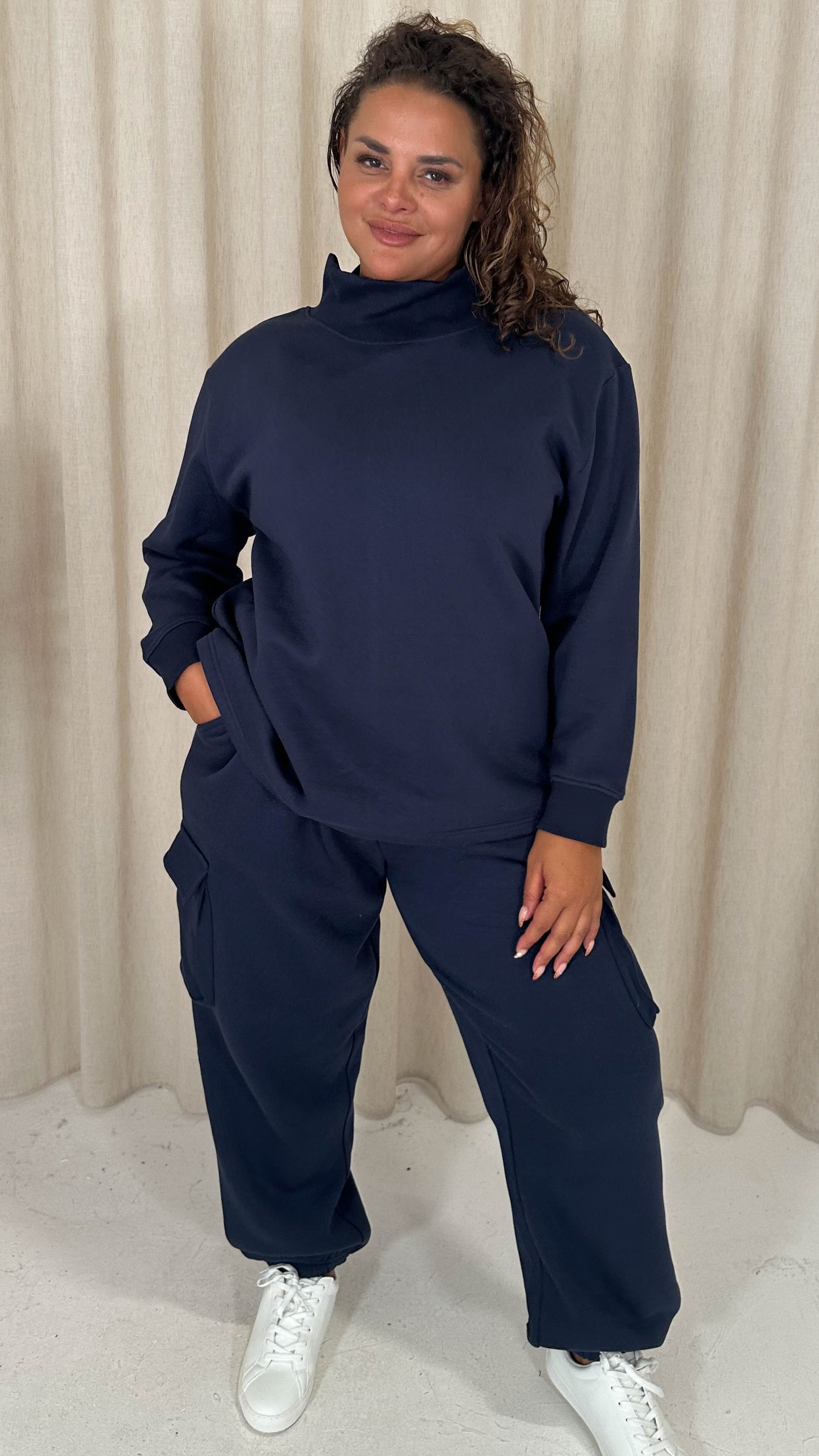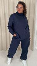 CurveWow Funnel Neck Zip Front Knitted Co-Ord Black