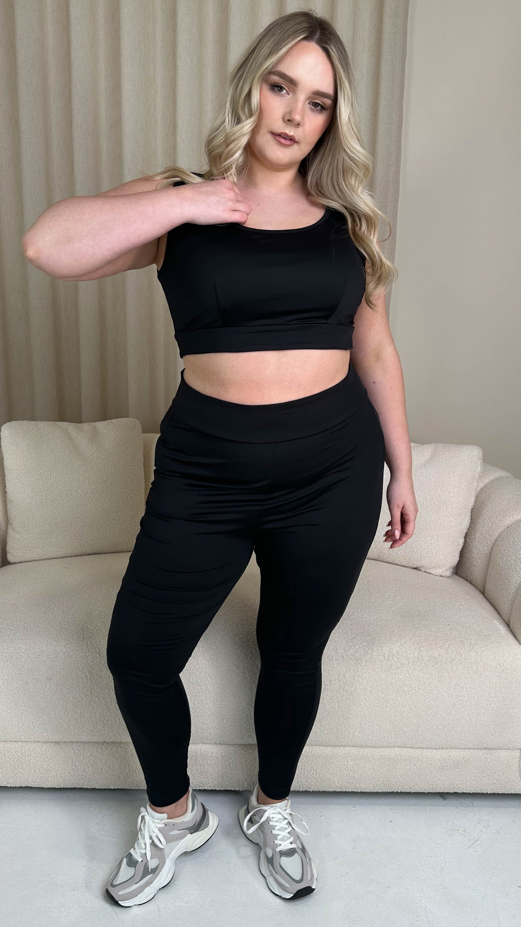 CurveWow Funnel Neck Zip Front Knitted Co-Ord Black
