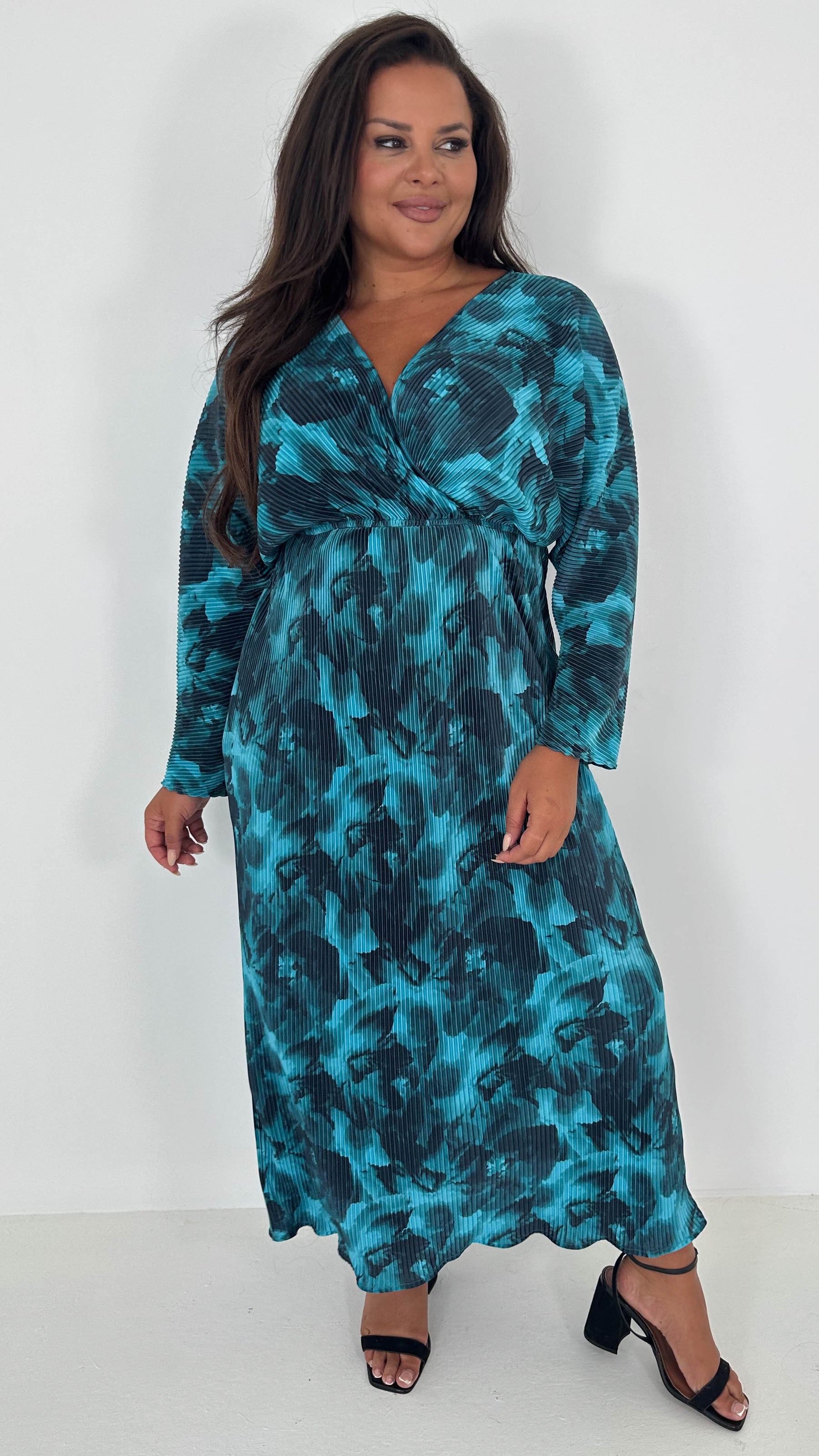 CurveWow Plisse Maxi Dress Turquoise Floral