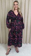CurveWow Petite Wrap Midi Dress Black Multi Floral