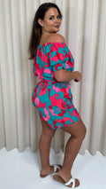 CurveWow Tropical Bardot Playsuit Black/Pink Tropical