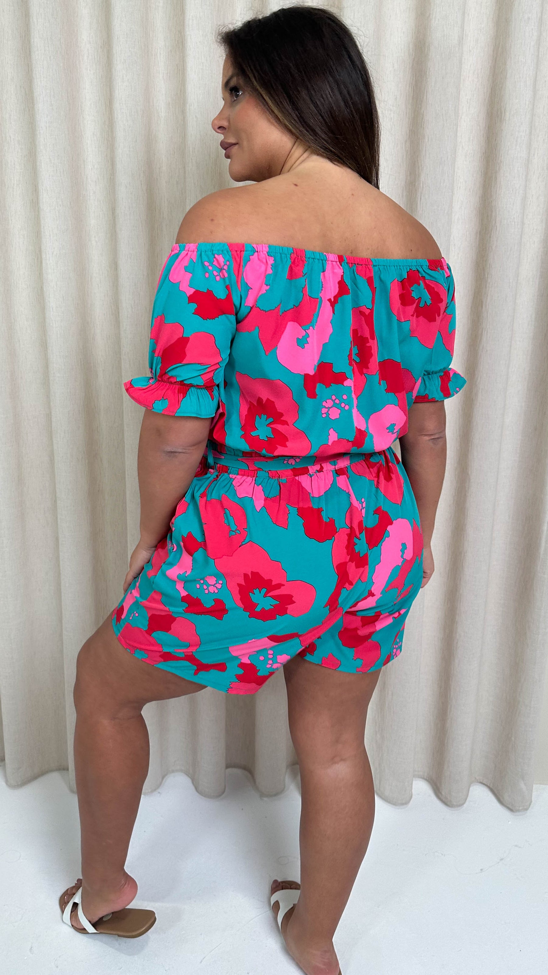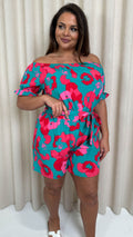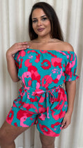 CurveWow Tropical Bardot Playsuit Teal Animal