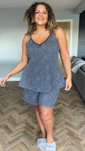 CurveWow Lace Trim Pyjama Set Navy Spot