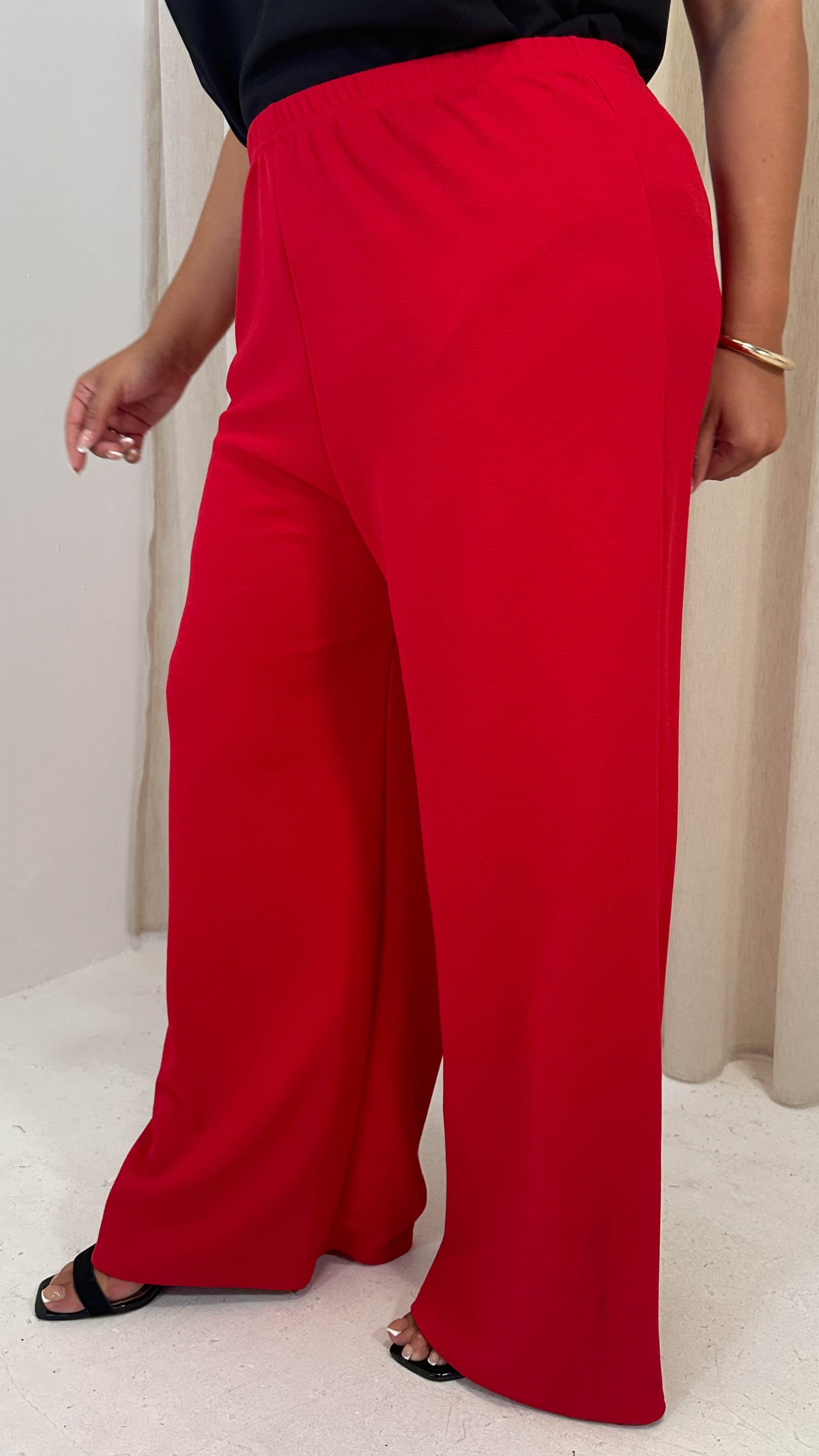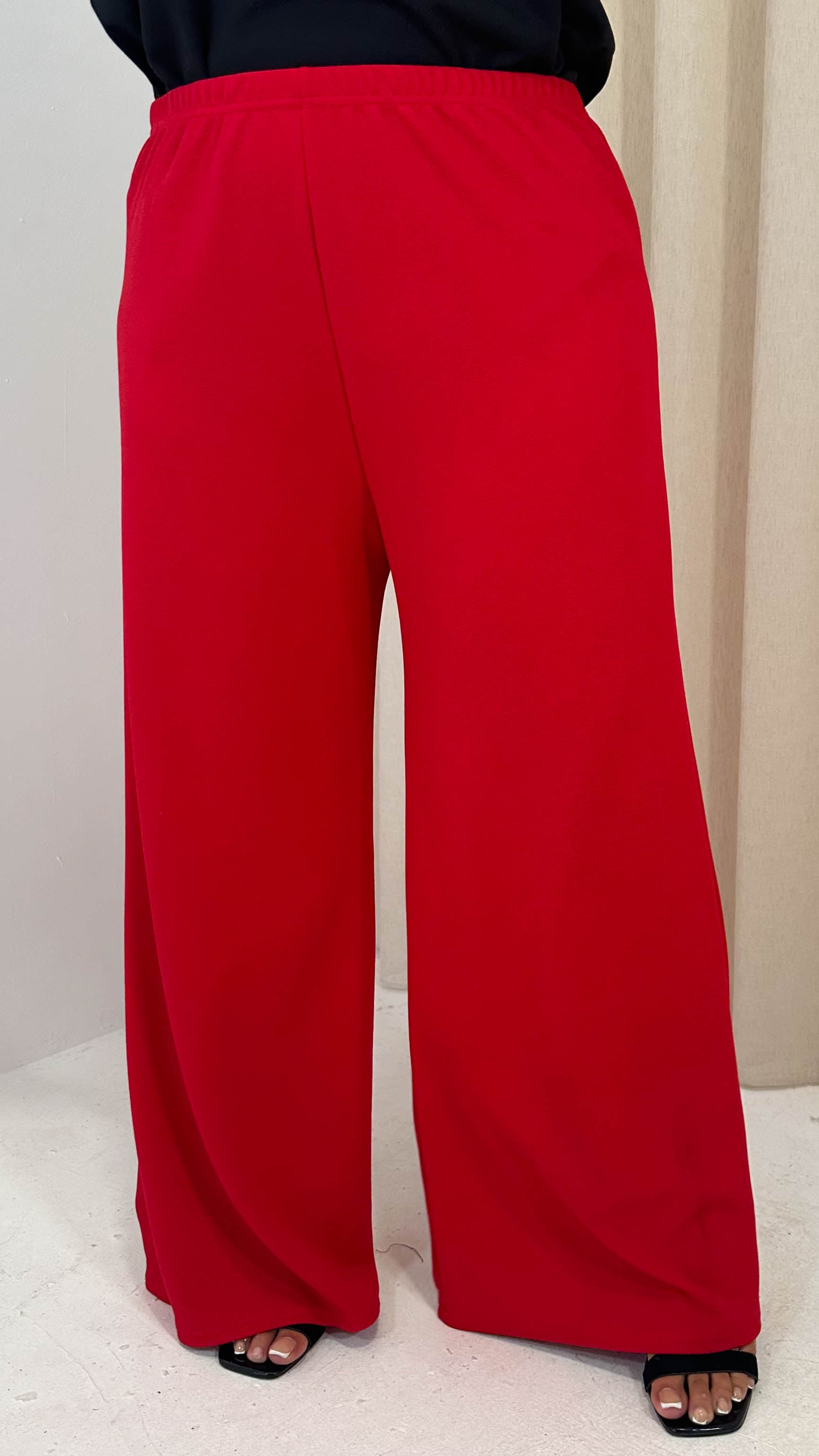 CurveWow Crepe Relaxed Wide Leg Trouser Cherry Red