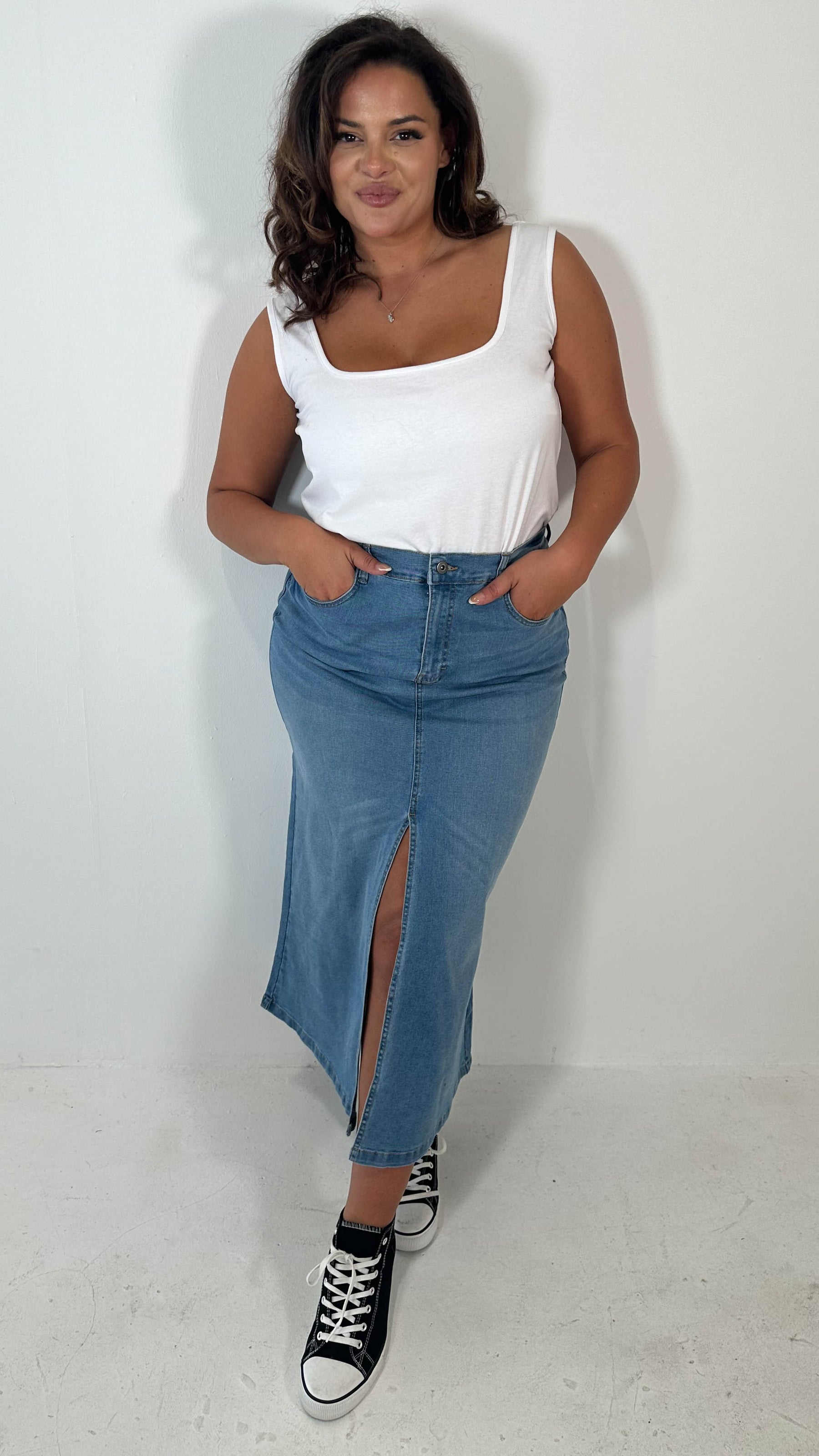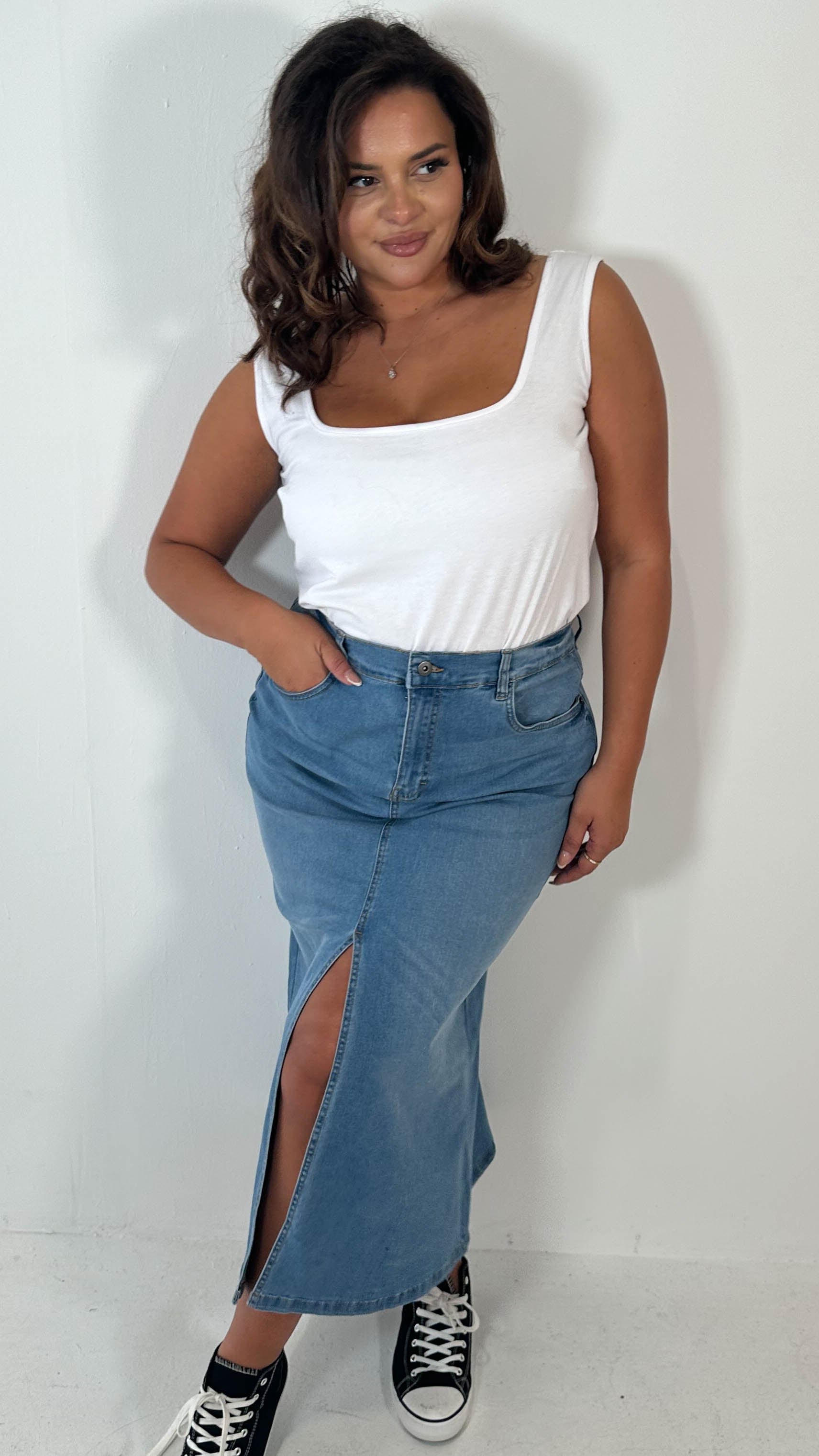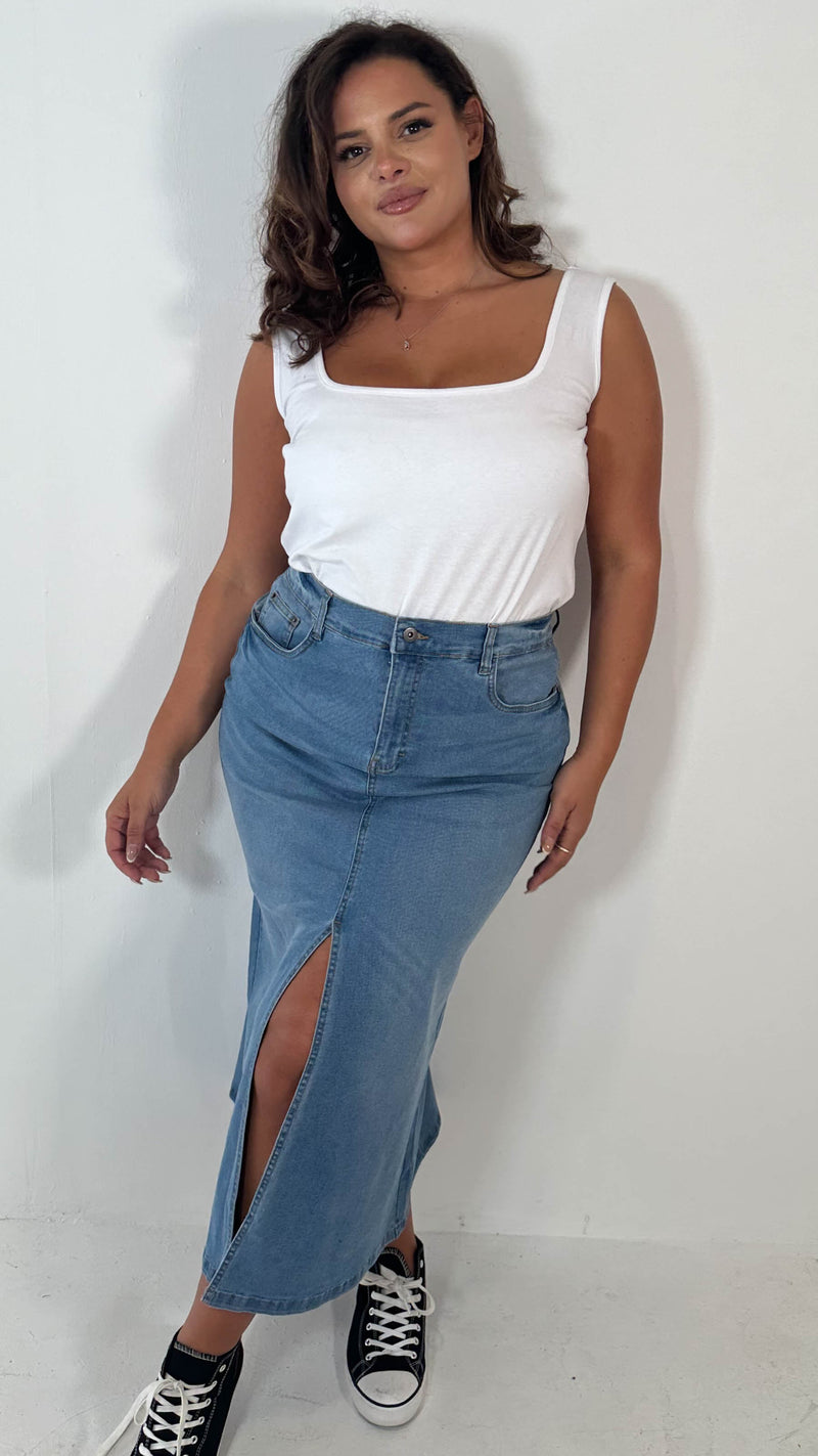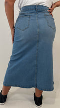 CurveWow Denim Split Front Midaxi Skirt Mid Blue