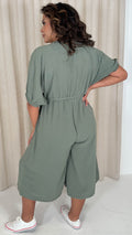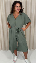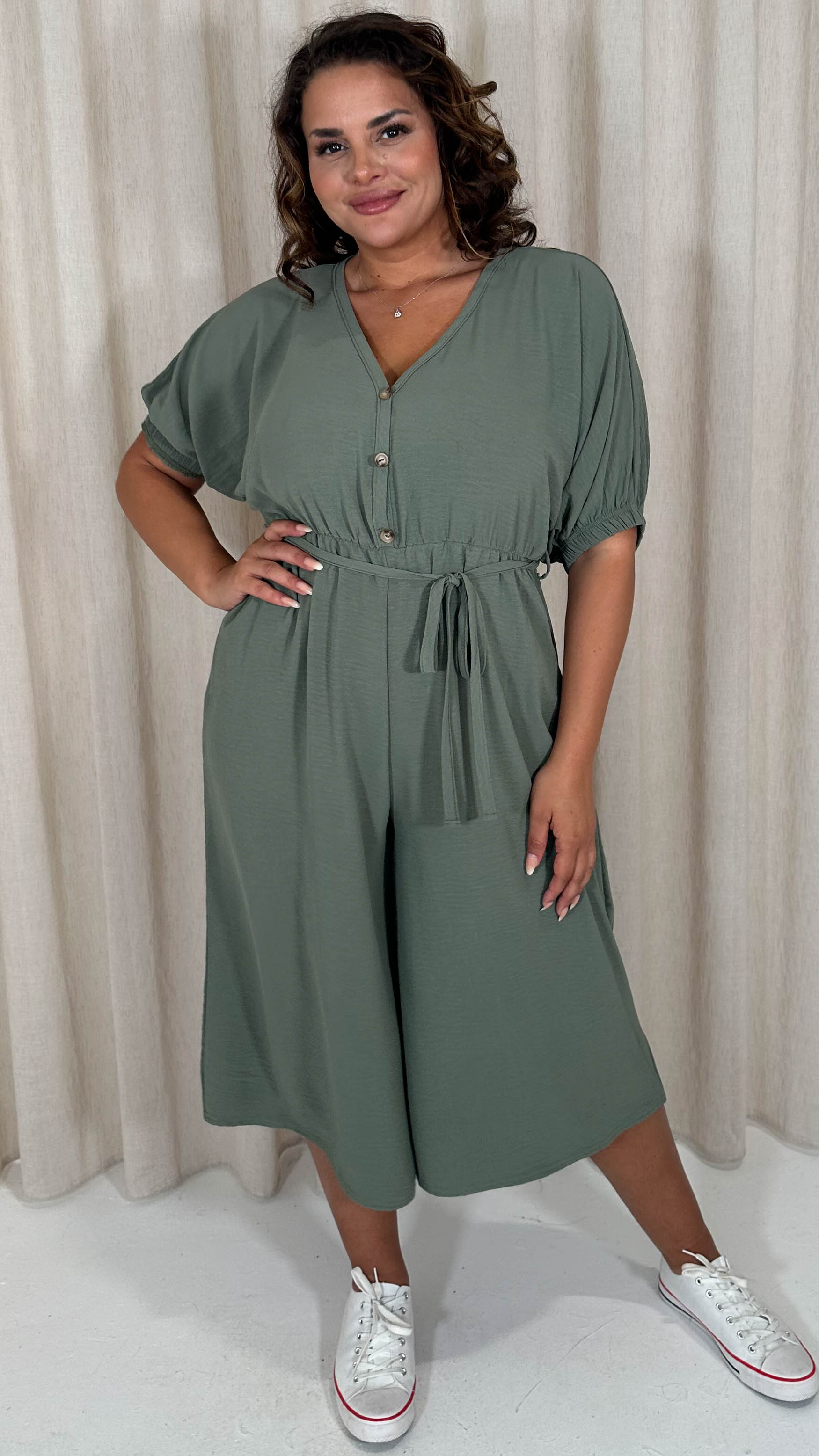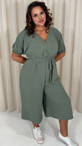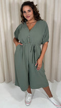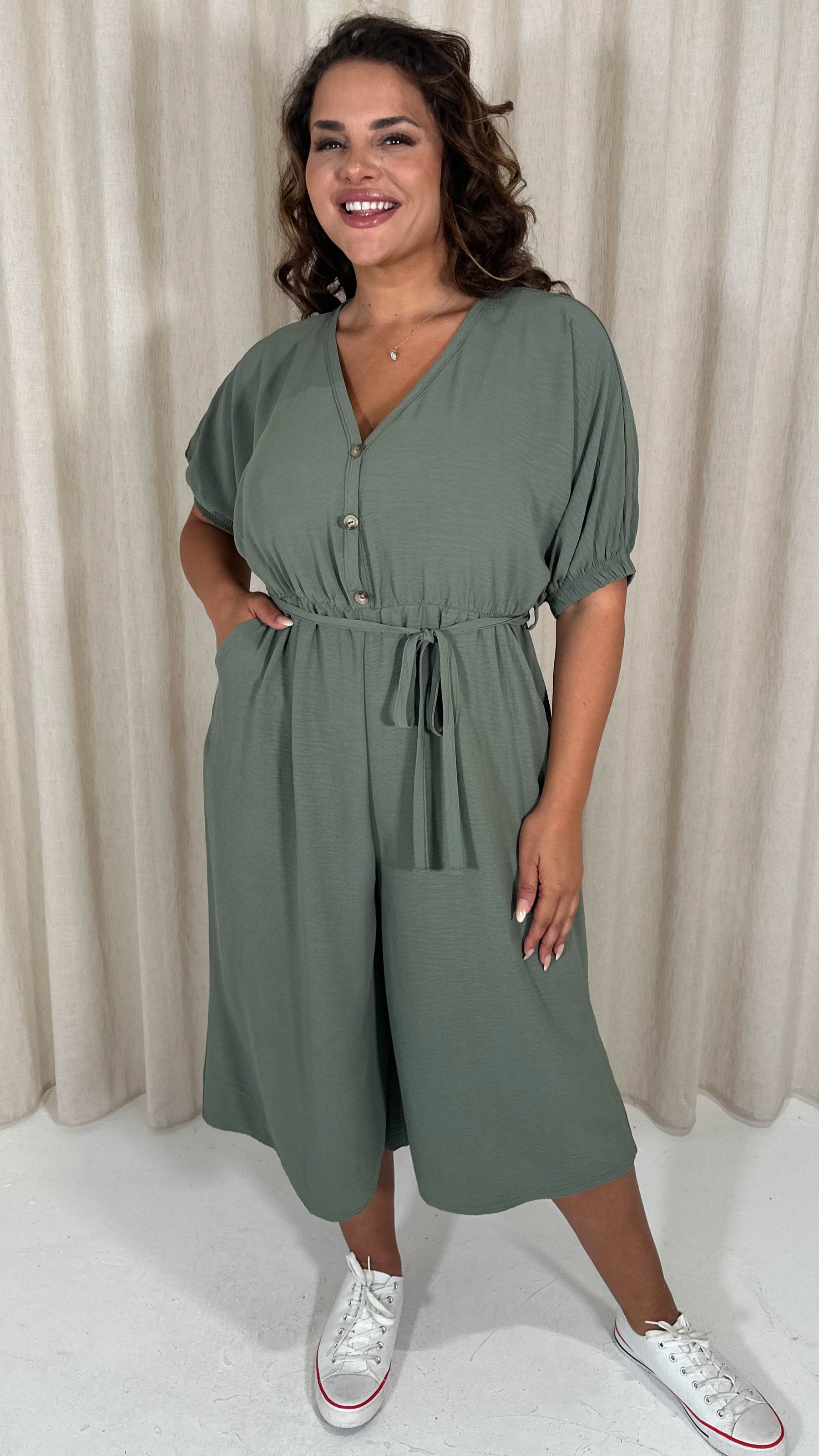 CurveWow Elasticated Cuff Culotte Jumpsuit Sage Green